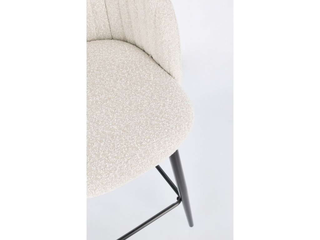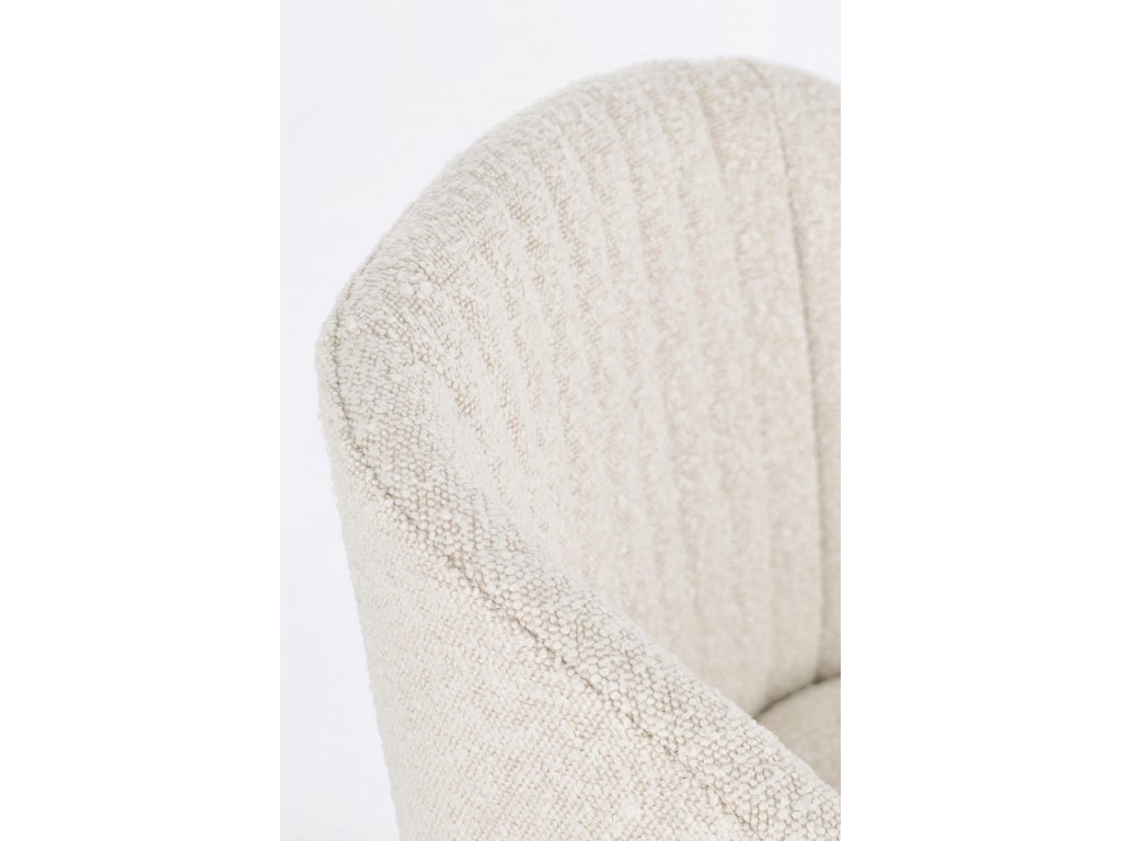 Výplň z polyuretánovej peny s hustotou 22 kg/m3 zabezpečuje pohodlné a ergonomické sedenie, čo je dôležité najmä pri dlhších sedeniach. Polyesterový a akrylový poťah s efektom bouclé dodáva stoličke štýlový a moderný vzhľad, zároveň je odolný voči opotrebeniu a ľahko sa udržiava v čistote.