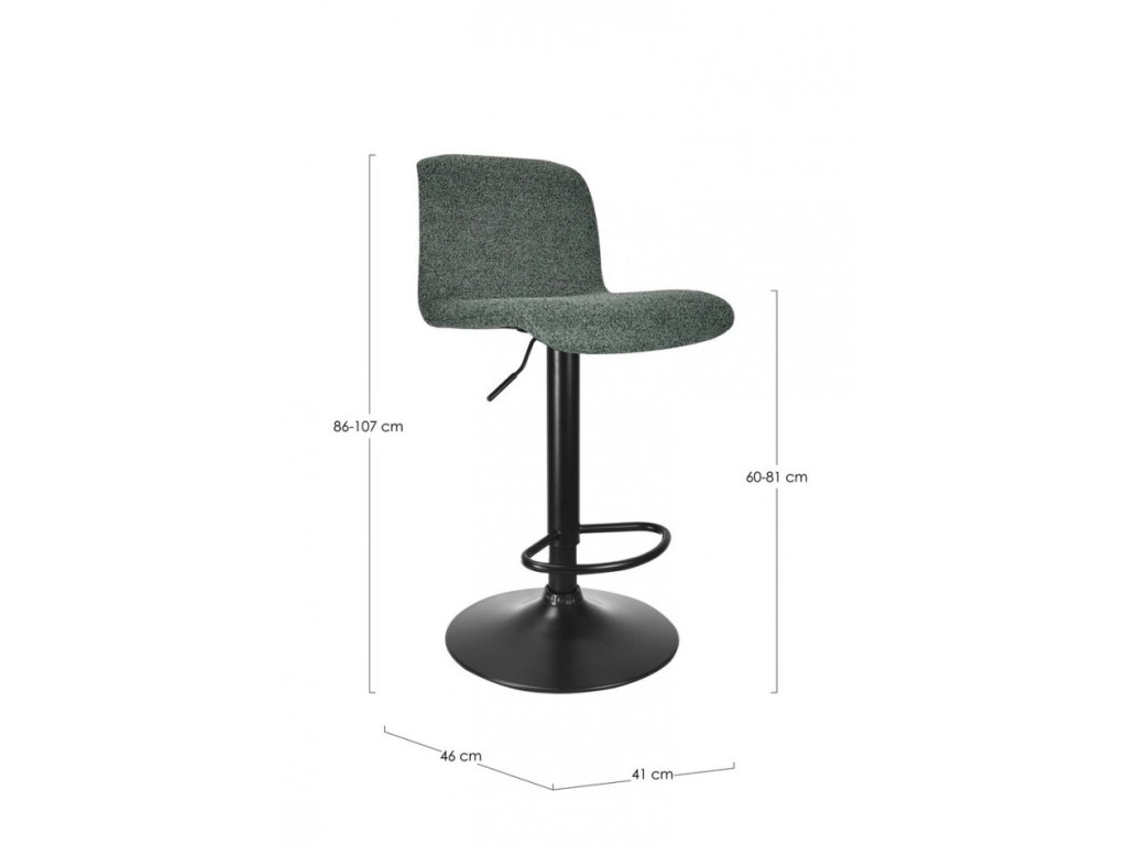 Moderná barová stolička, definovaná pohodlným sedením, predstavuje súčasné riešenie pre moderné domácnosti. Pohodlné sedenie zabezpečí výplň z polyuretánovej peny s hustotou 24kg / m3. Oceľový rám s epoxidovým práškovým náterom v čiernej farbe tvorí krásny kontrast k tmavozelenému čalúneniu z poylesteru.
