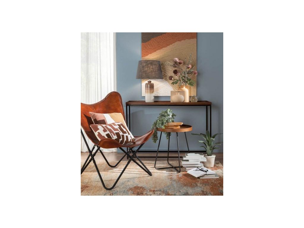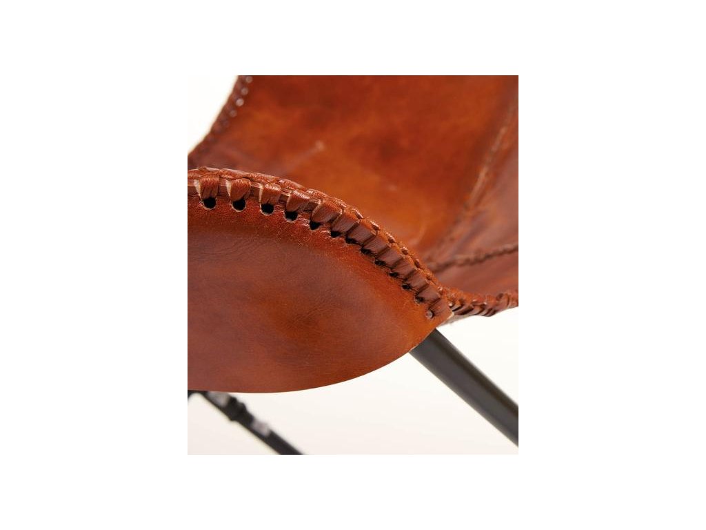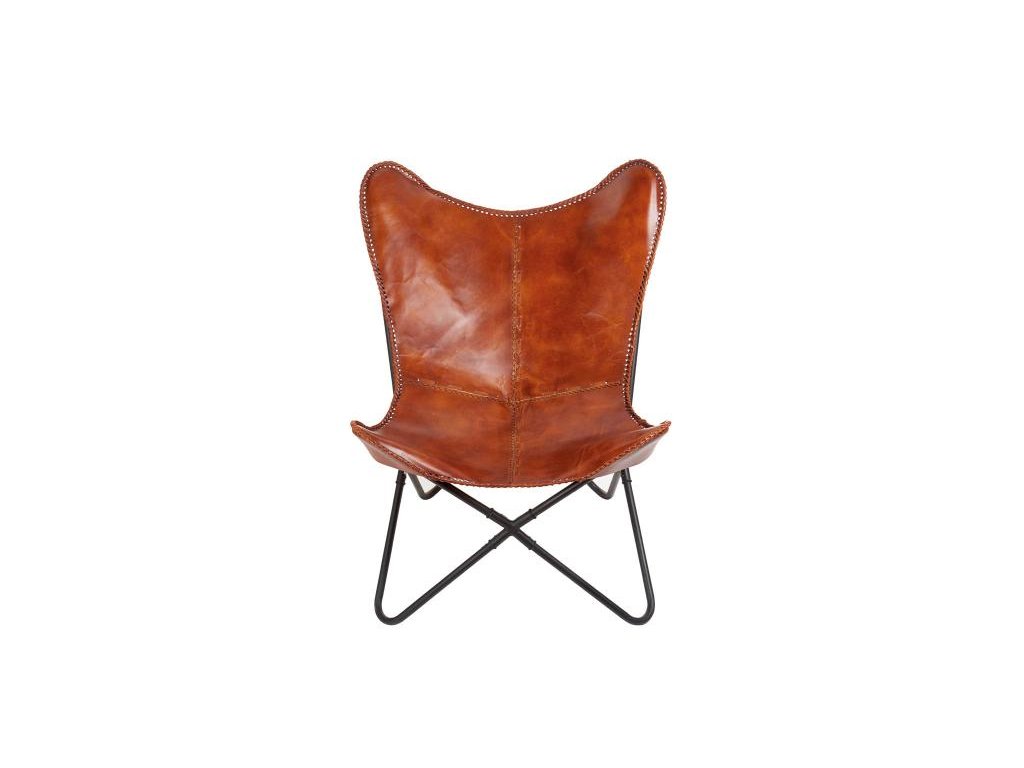 Dizajnové kreslo s koženým sedákom a kovovou konštrukciou