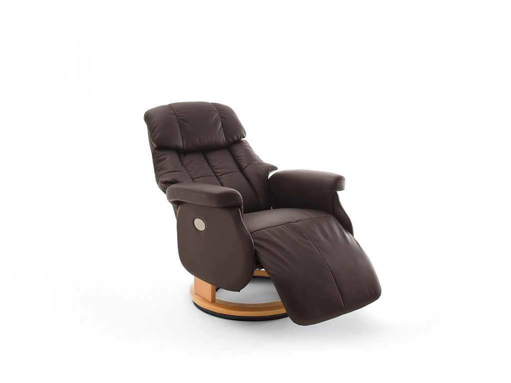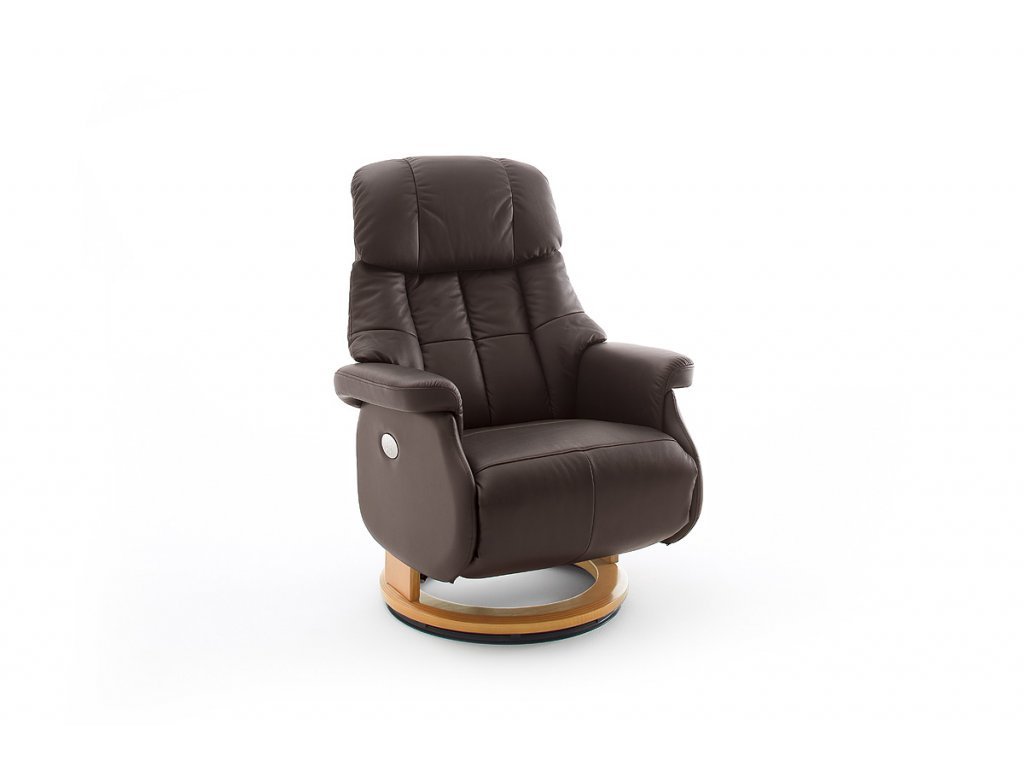 Polohovateľné elektrické otočné kreslo Calgary Comfort XL prináša punc luxusu a štýlu v jednom balení. Je to dizajnérsky skvost patriaci do moderného i štýlového interiéru. Verzia Comfort prináša ešte viac pohodlia pre tých najnáročnejších. Je doplnená o elektrické nastavovanie sklonu operadla a opierky nôh. Ovládacie tlačidlá sú umiestnené na pravej strane. Kvalitné prevedenie, prvotriedna koža v hnedej farbe a podnož z dreva tvoria celok, ktorý priťahuje pohľady ako magnet. Podnož je k dispozícii v dvoch farbách čiernej a prírodnej.