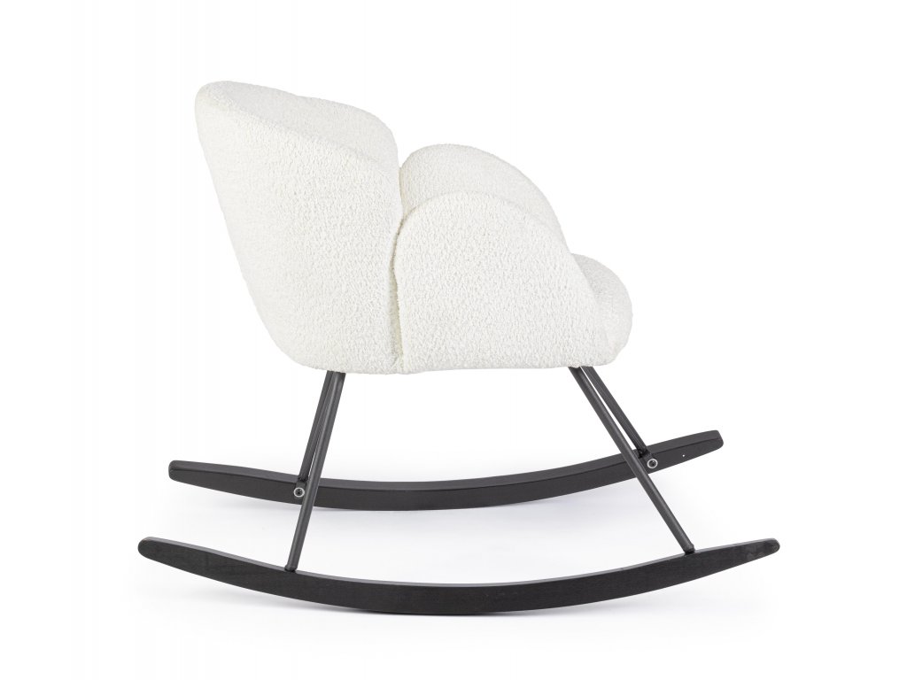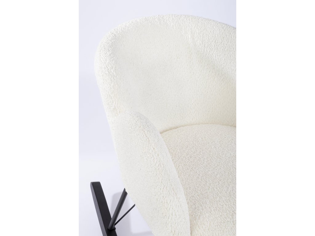 Polyesterové čalúnenie s efektom bouclé dodáva kreslu nádych luxusu a mäkkosti, zatiaľ čo kvalitná výplň z polyuretánovej peny ponúka bezkonkurenčný komfort. Hustota peny je 25 kg/m3 pre sedadlo, čo zaisťuje optimálnu oporu, a 18 kg/m3 pre operadlo, čo ponúka ergonomickú podporu počas dlhých relaxačných sedení.