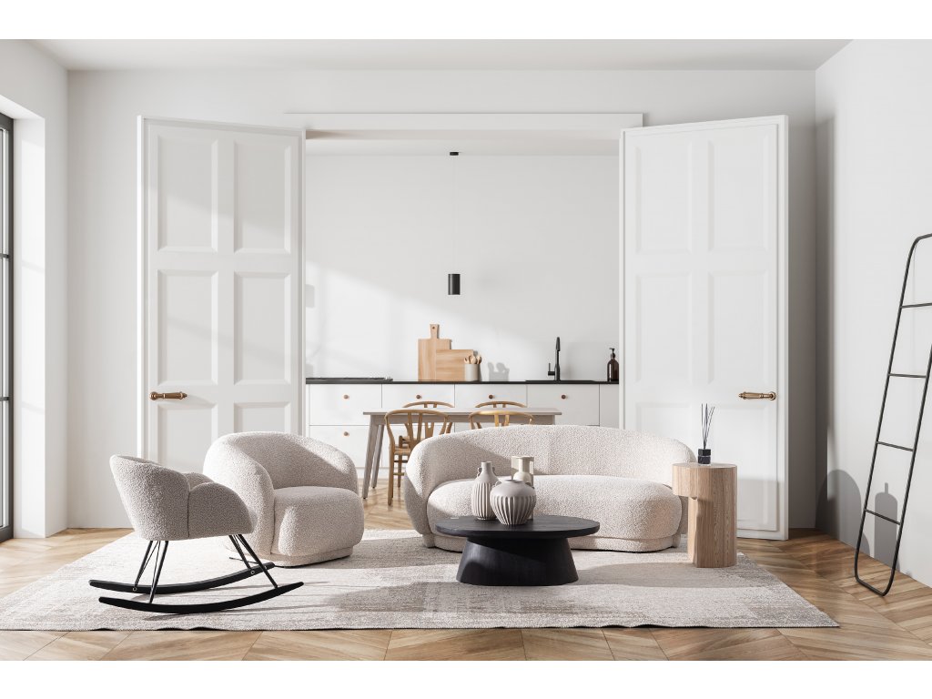 Hojdacie kreslo Sibilla natural biela - bouclé