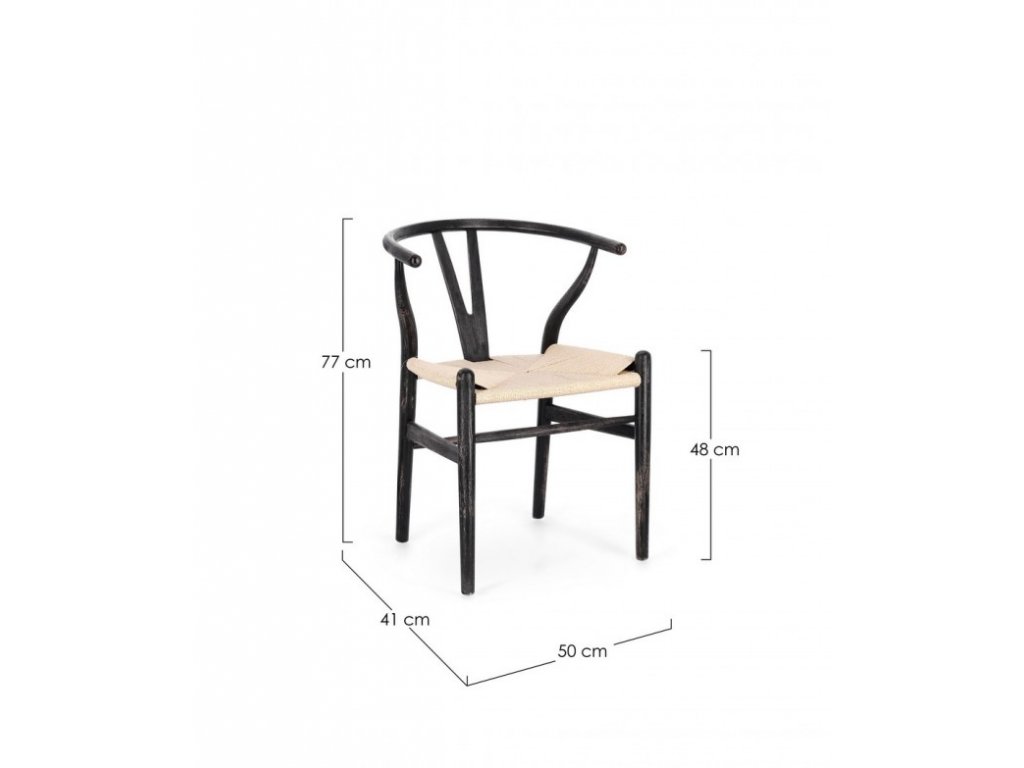 Táto stolička sa perfektne hodí k rôznym štýlom zariadenia vďaka svojej prirodzenej čiernej farbe, ktorá sa ľahko prispôsobí akémukoľvek prostrediu. Papierové lano použité na sedadlo je pevné a odolné a zaisťuje pohodlné a podopreté sedadlo. Stolička Artemia je ideálna na vytvorenie príjemnej a sofistikovanej atmosféry v akomkoľvek interiéri, či už je to obývacia izba, jedáleň, kancelária alebo kaviareň.