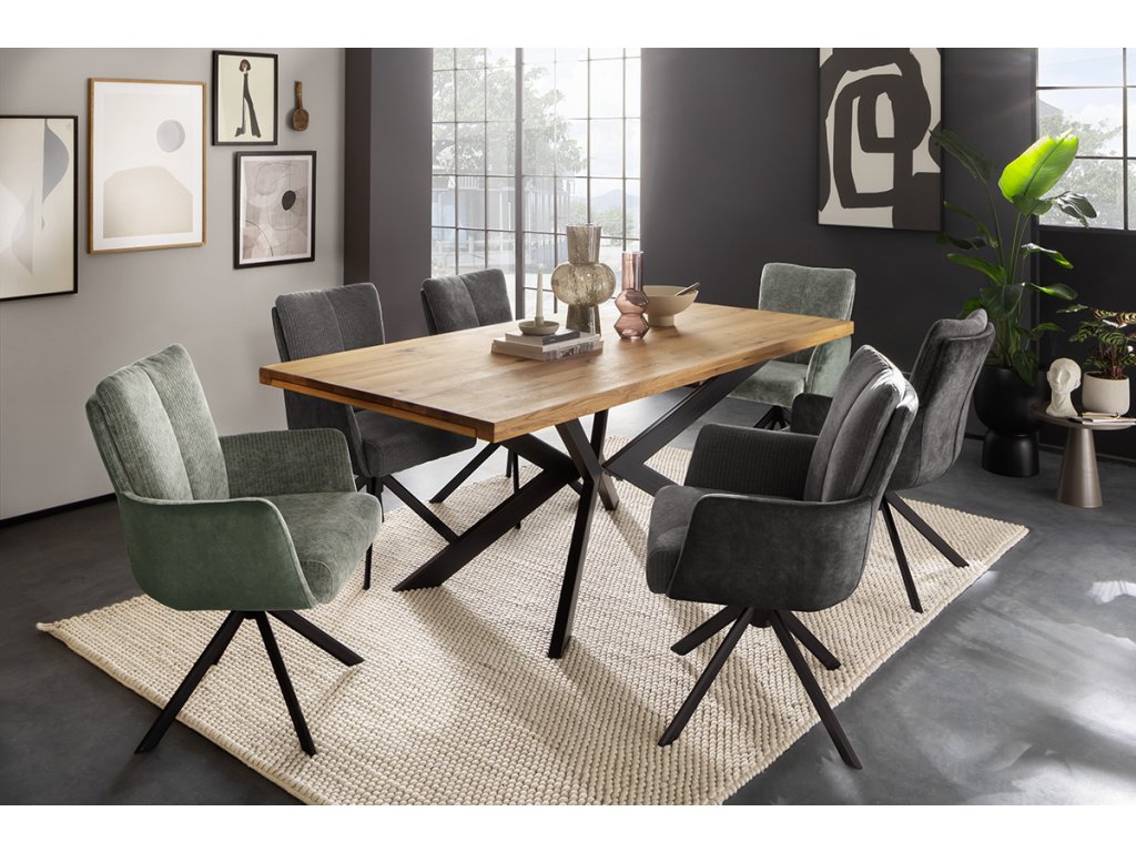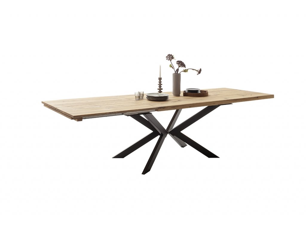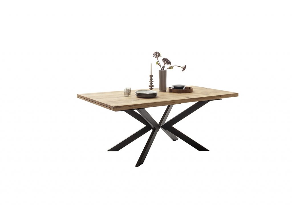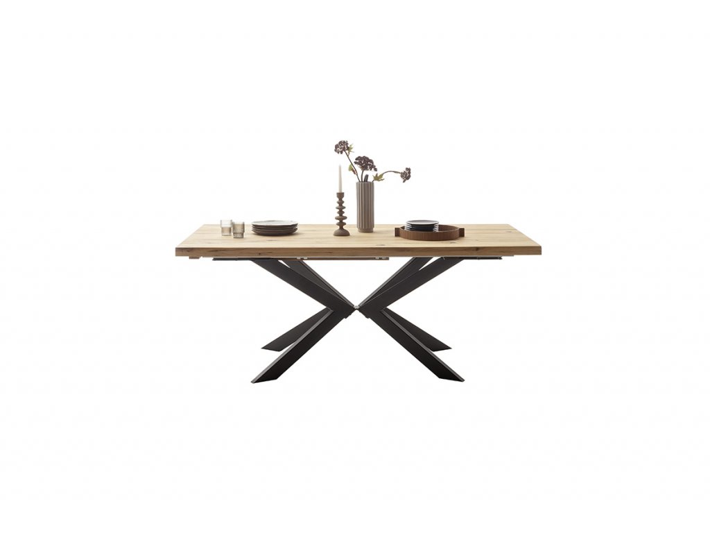 Ak chcete dodať svojej jedálni moderný vzhľad, skvelým riešením môže byť práve rozkladací stôl Barletta. Hviezdicový rám s práškovým lakovaním antracitovej farby pôsobí pomerne jednoducho, ale rozhodne harmonicky dotvára vzhľad nábytku. Masívna doska stola z olejovaného divokého duba má hrúbku až 5 cm. Stôl ťaží z pohodlného synchrónneho výsuvu, čím dokáže narásť do značnej celkovej dĺžky približne 280 cm. Vytvorte si domácu atmosféru s jedálenským stolom Barletta a vychutnajte si príjemný večer v spoločnosti svojich blízkych.