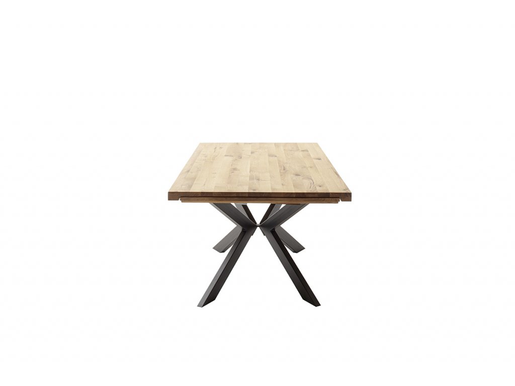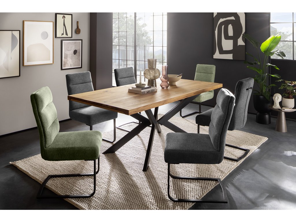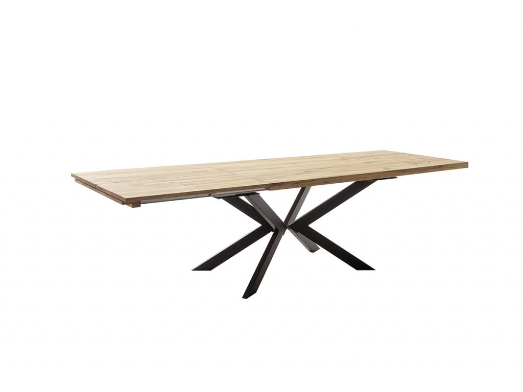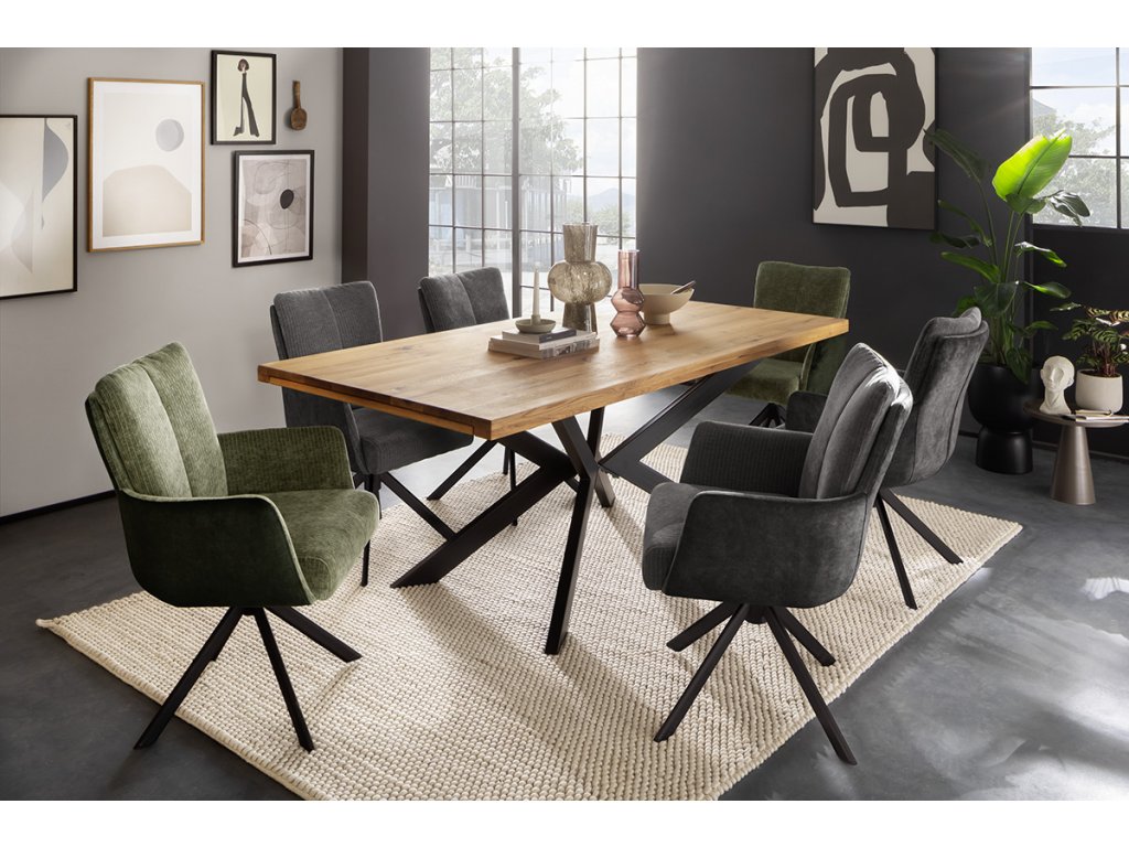 Ak chcete dodať svojej jedálni moderný vzhľad, skvelým riešením môže byť práve rozkladací stôl Barletta. Hviezdicový rám s práškovým lakovaním antracitovej farby pôsobí pomerne jednoducho, ale rozhodne harmonicky dotvára vzhľad nábytku. Masívna doska stola z olejovaného divokého duba má hrúbku až 5 cm. Stôl ťaží z pohodlného synchrónneho výsuvu, čím dokáže narásť do značnej celkovej dĺžky približne 280 cm. Vytvorte si domácu atmosféru s jedálenským stolom Barletta a vychutnajte si príjemný večer v spoločnosti svojich blízkych.