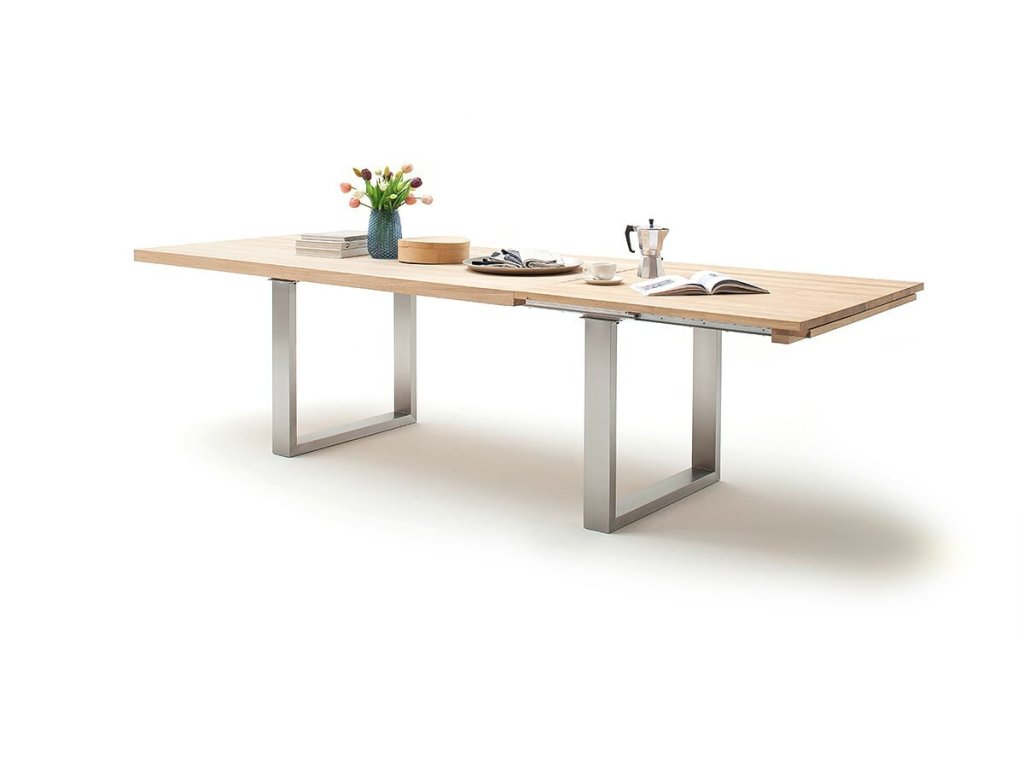 Rozkladacie stoly sú veľmi obľúbené pre svoju prispôsobivosť. Jedálenský rozkladací stôl Dayton nájde uplatnenie hlavne v moderných jedálňach. Výrobca vsadil v tomto prípade na kombináciu dvojice osvedčených podnoží v tvare U z nerezovej ocele a masívnej dosky stola z duba bianco s hrúbkou 5 cm. Každý stôl je možné jednoducho rozložiť za pomoci výsuvnej časti a doplnkovej rozkladacej dosky až o 100 cm.