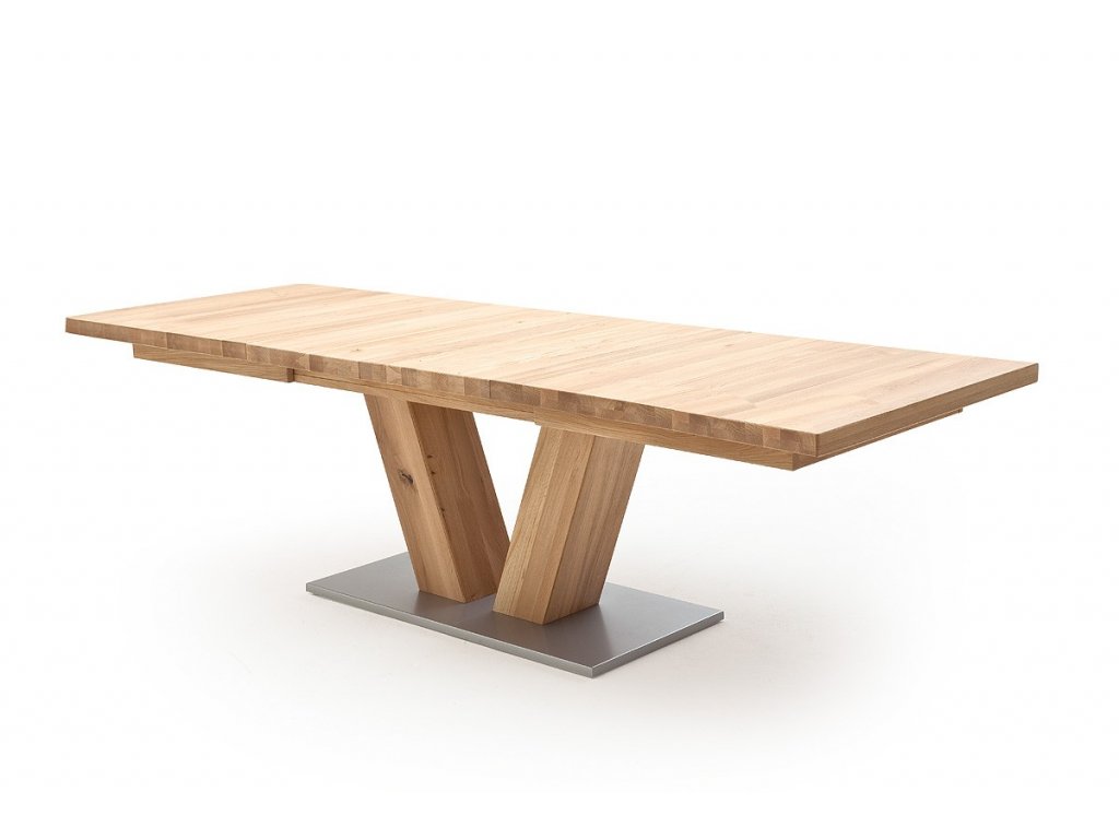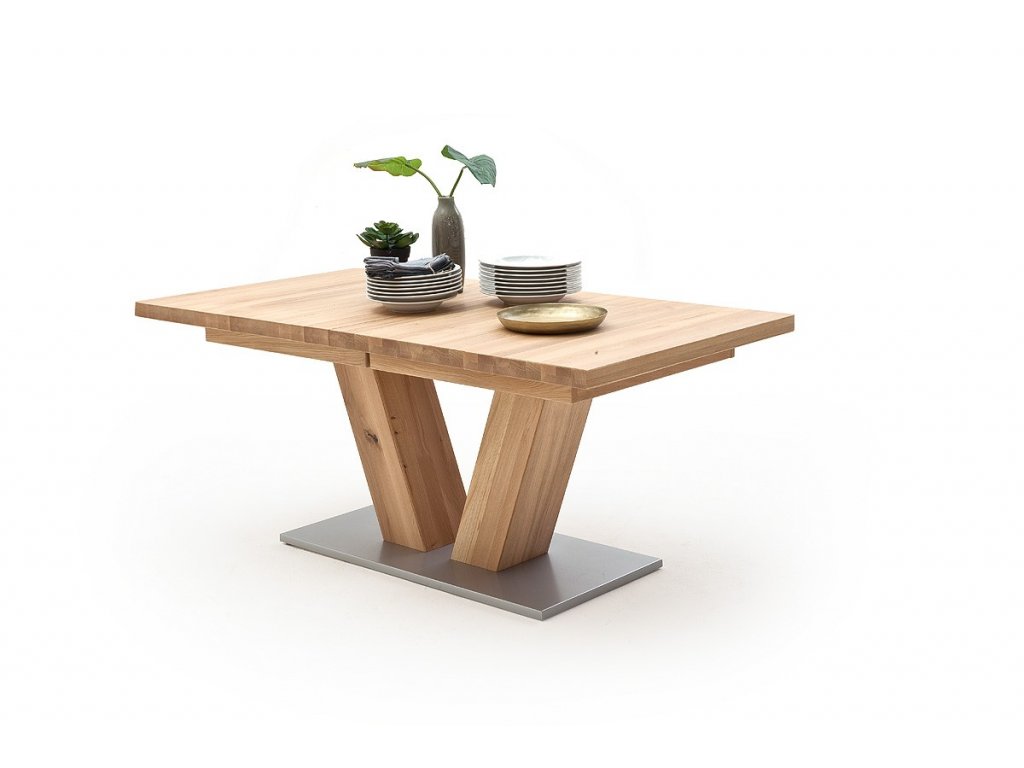Elegantný rozkladací stôl z masívu tentokrát v prevedení dub bianco určite využijete na pohostenie celej rodiny. Vďaka univerzálnemu dizajnu je jednoducho kombinovateľný. Kvalitné spracovanie a funkčnosť sú samozrejmosťou. Stôl je dostupný v dvoch rozmeroch, a to 140 cm, ktorý je možné rozložiť až do dĺžky 220 cm alebo 180 cm, ktorý je možné rozložiť až do dĺžky 270 cm. Rozloženie zabezpečujú dve vnútorné predlžovacie dosky o rozmere 40 cm.