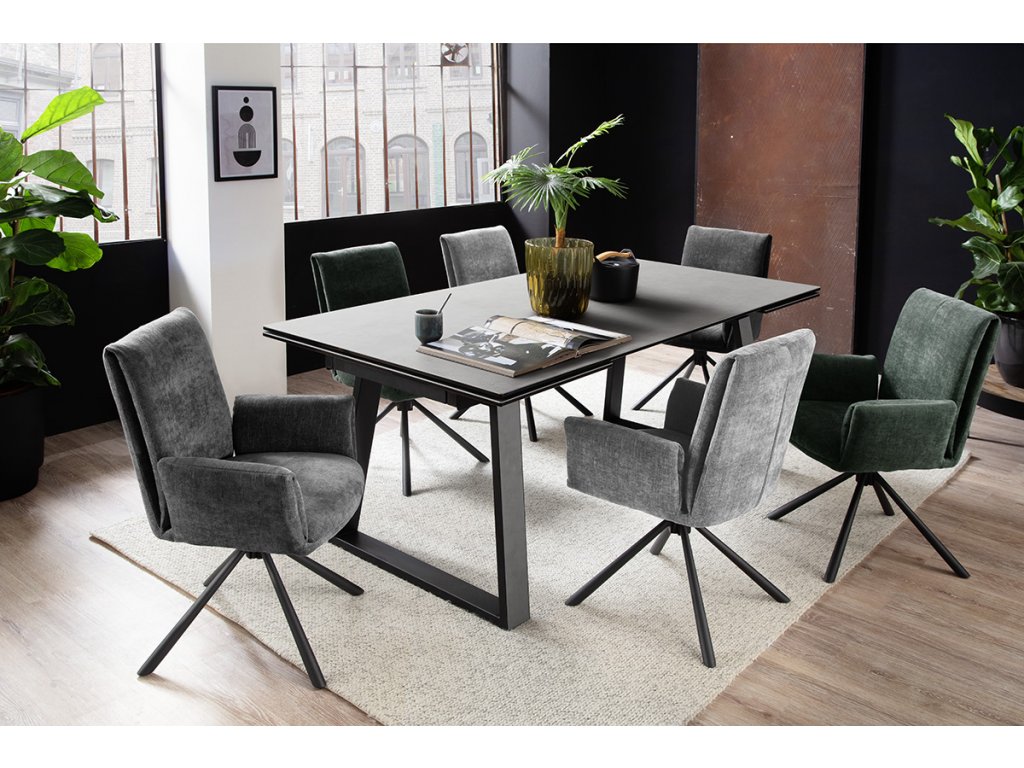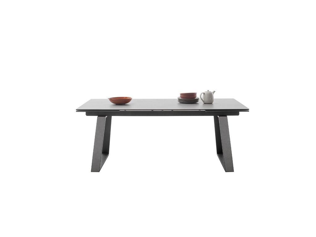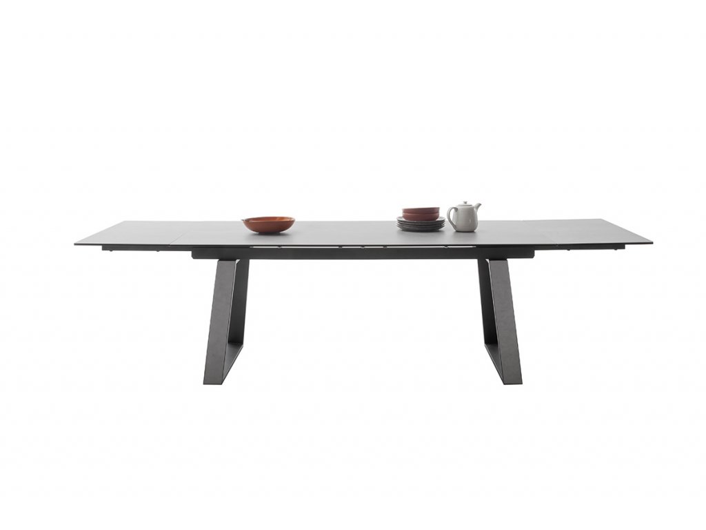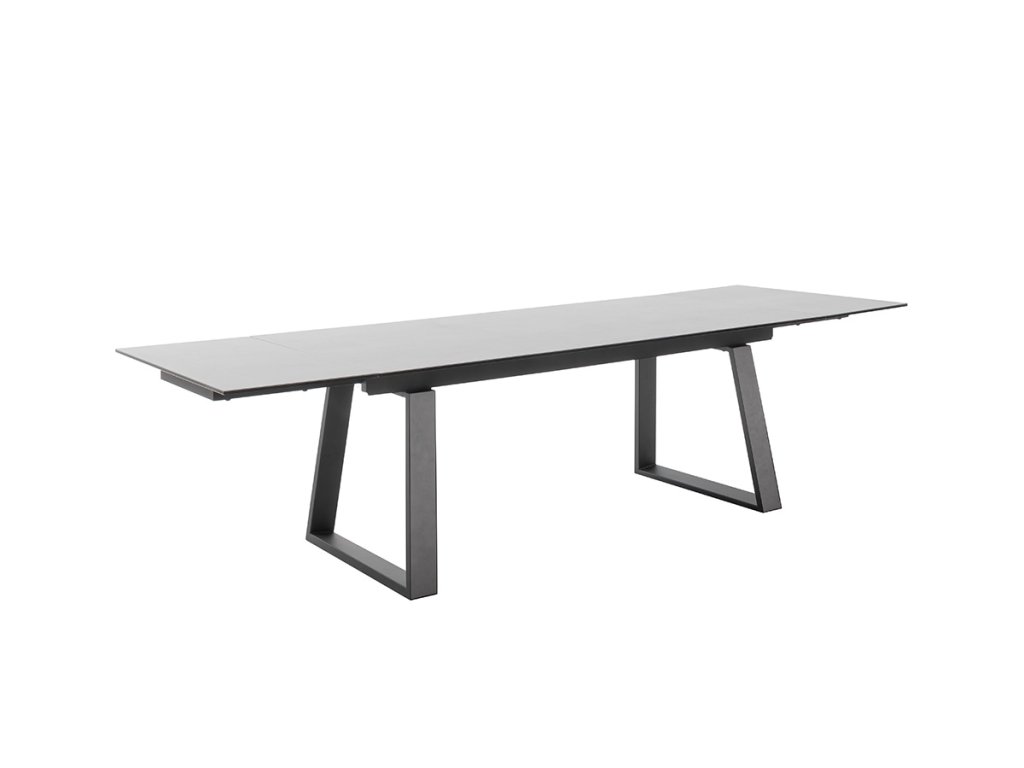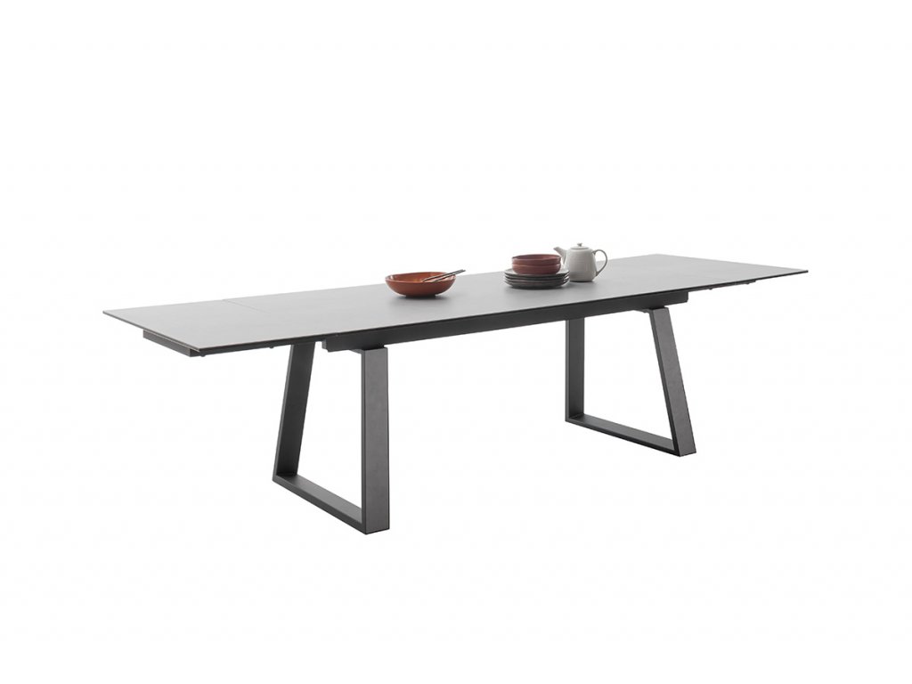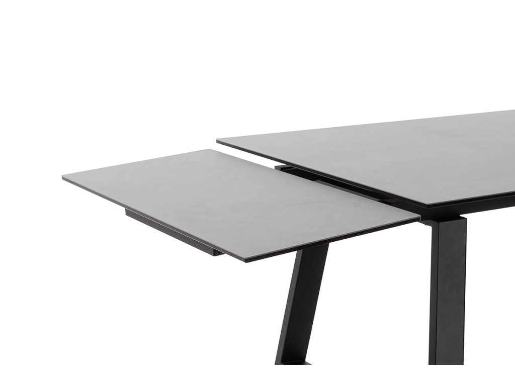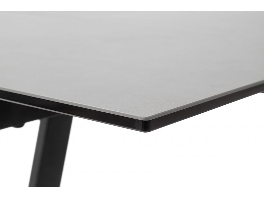 Rozkladací jedálenský stôl Narbonne v svetlosivom prevedení je vhodný do moderných a priestranných kuchýň. Jeho veľkou devízou je veľkosť. V základe ma dĺžku 200 cm. V prípade potreby je však z oboch strán rozšíriteľný až o 50 cm. Stolová doska z čierneho lakovaného bezpečnostného skla s keramickým povrchom svetlosivej farby tak nadobudne dĺžku až 300 cm. Keramika je ideálna ako stolová doska. Je odolná voči veľmi vysokým a nízkym teplotám a má vysokú odolnosť voči nárazom, otrasom a poškriabaniu. Je tiež veľmi hygienická a ľahko sa čistí. Podnož je z čierneho matne lakovaného kovu.