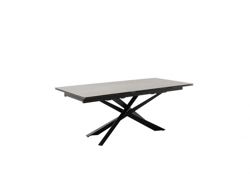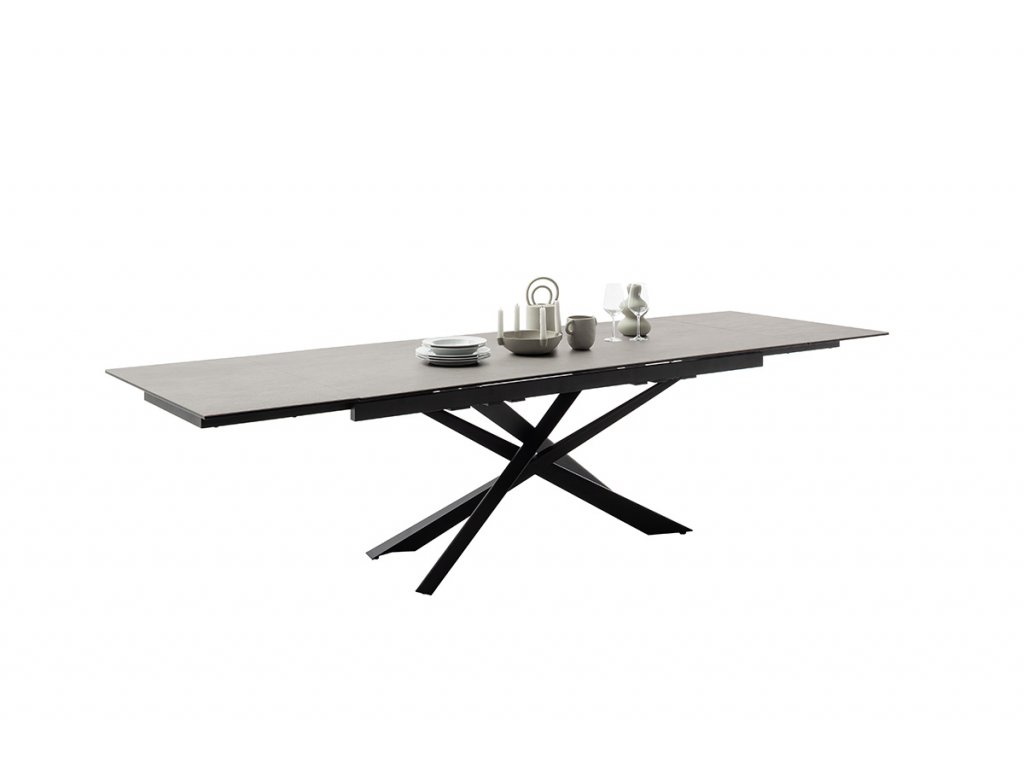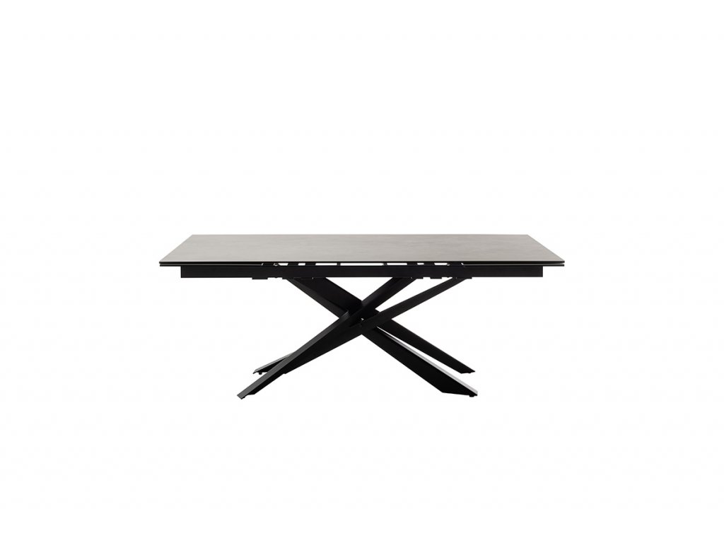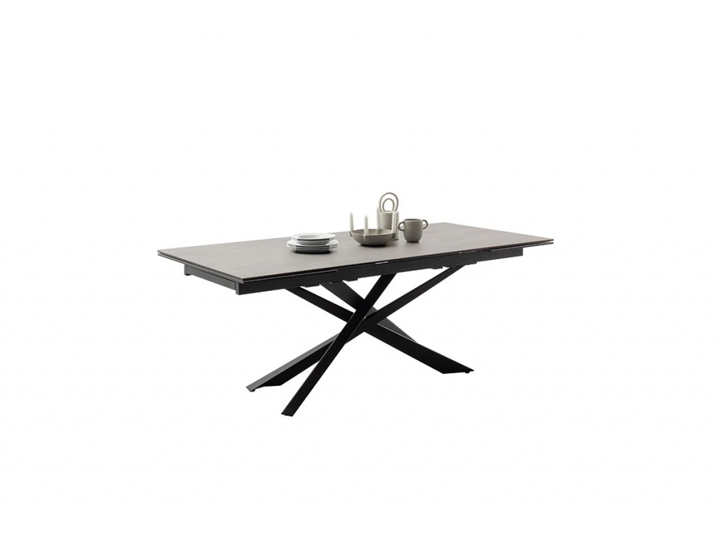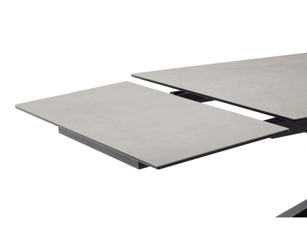 Jedálenský rozkladací stôl Tesero II má základné rozmery dosky približne 200 x 95 cm. Vďaka funkčnému rozkladaciemu mechanizmu na oboch stranách sa však dá jednoducho rozšíriť až o celkovo 100 cm. Doska stola je z osvedčenej keramiky antracitovej farby a bezpečnostného skla. Táto kombinácia prináša extrémnu odolnosť a údržbu bez námahy. Podnož je z kovu čiernej matnej farby. Nepôsobí však vôbec nenápadne, práve naopak. Svojím lúčovitým vzhľadom upúta nielen svojho majiteľa, ale aj prípadnú návštevu.