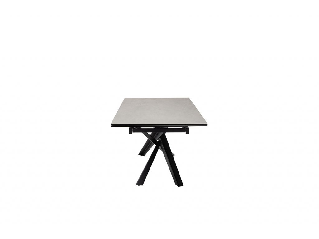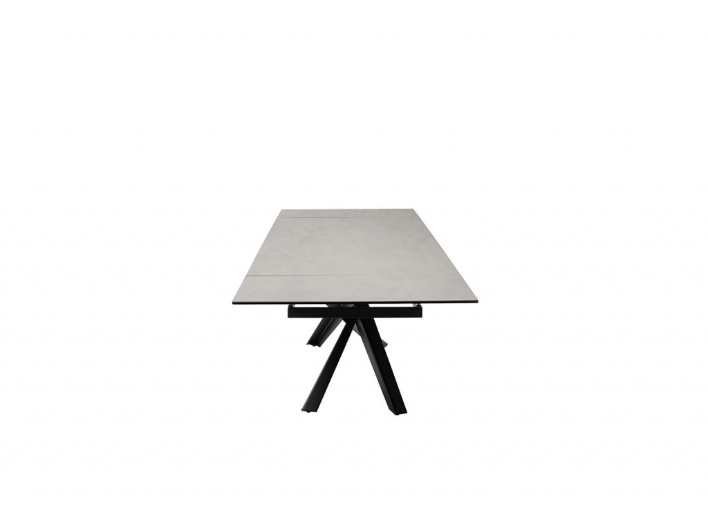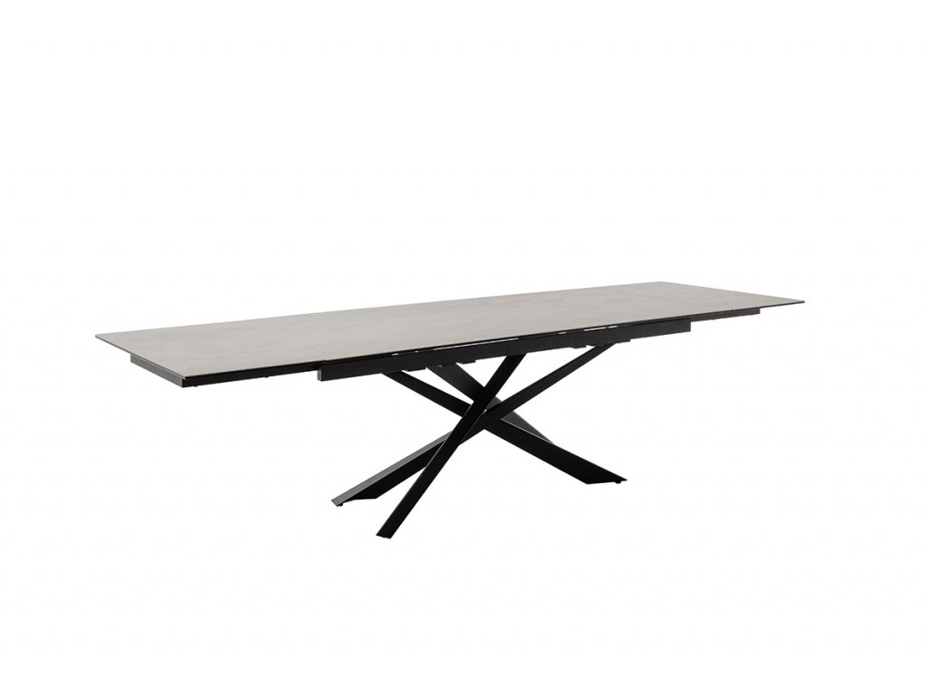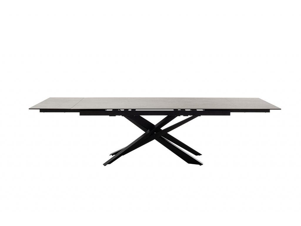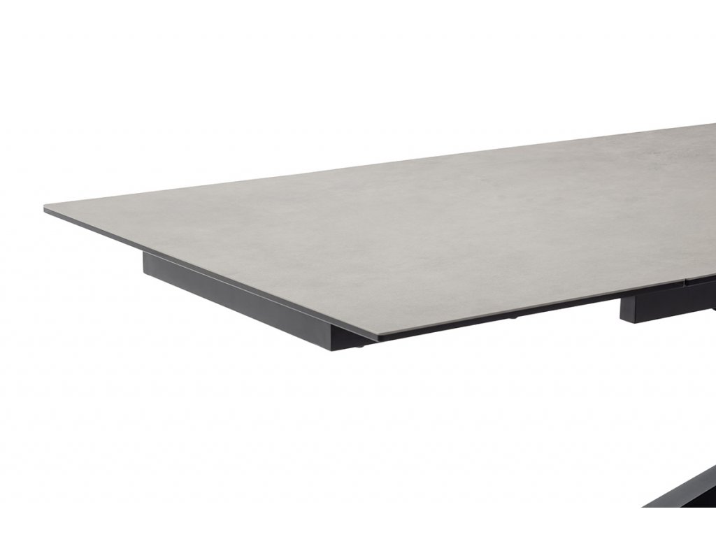 Jedálenský rozkladací stôl Tesero II má základné rozmery dosky približne 200 x 95 cm. Vďaka funkčnému rozkladaciemu mechanizmu na oboch stranách sa však dá jednoducho rozšíriť až o celkovo 100 cm. Doska stola je z osvedčenej keramiky antracitovej farby a bezpečnostného skla. Táto kombinácia prináša extrémnu odolnosť a údržbu bez námahy. Podnož je z kovu čiernej matnej farby. Nepôsobí však vôbec nenápadne, práve naopak. Svojím lúčovitým vzhľadom upúta nielen svojho majiteľa, ale aj prípadnú návštevu.