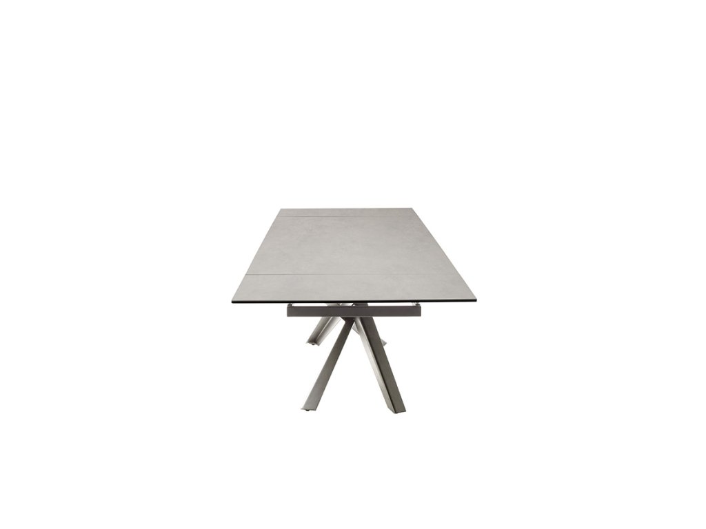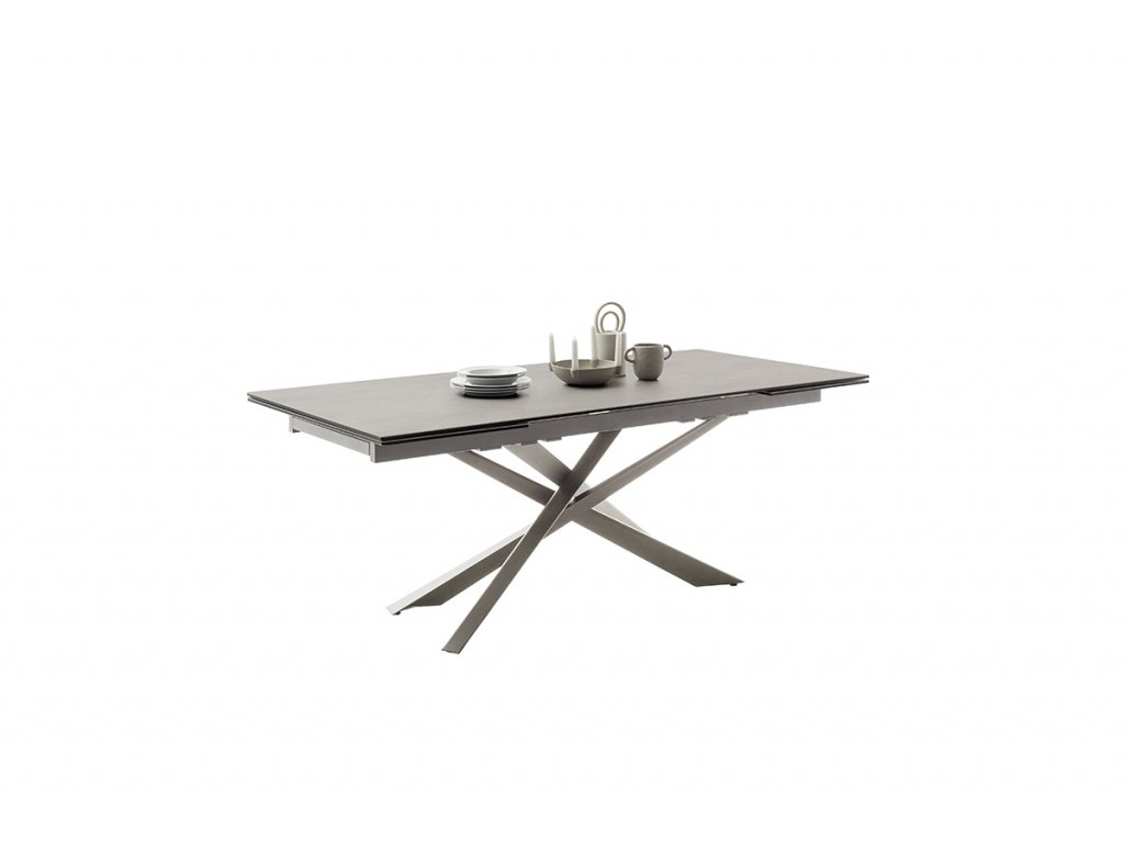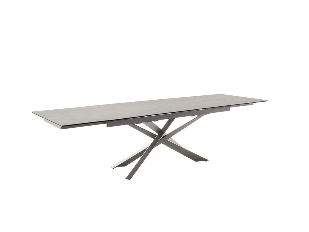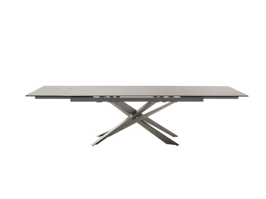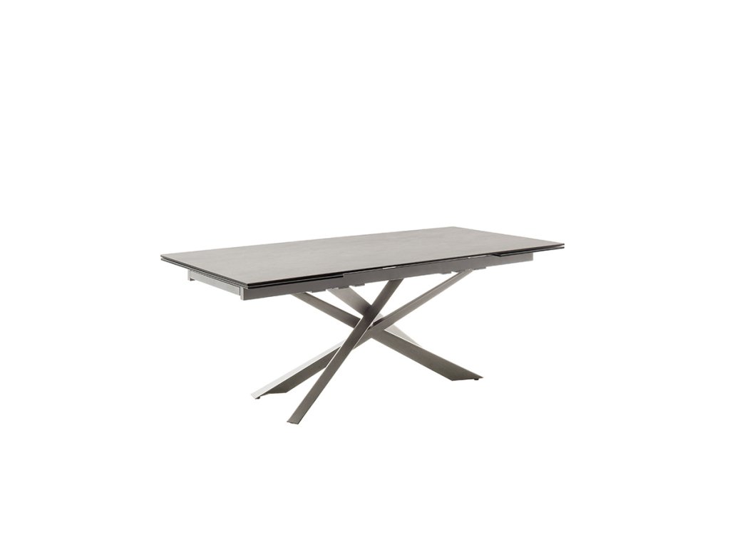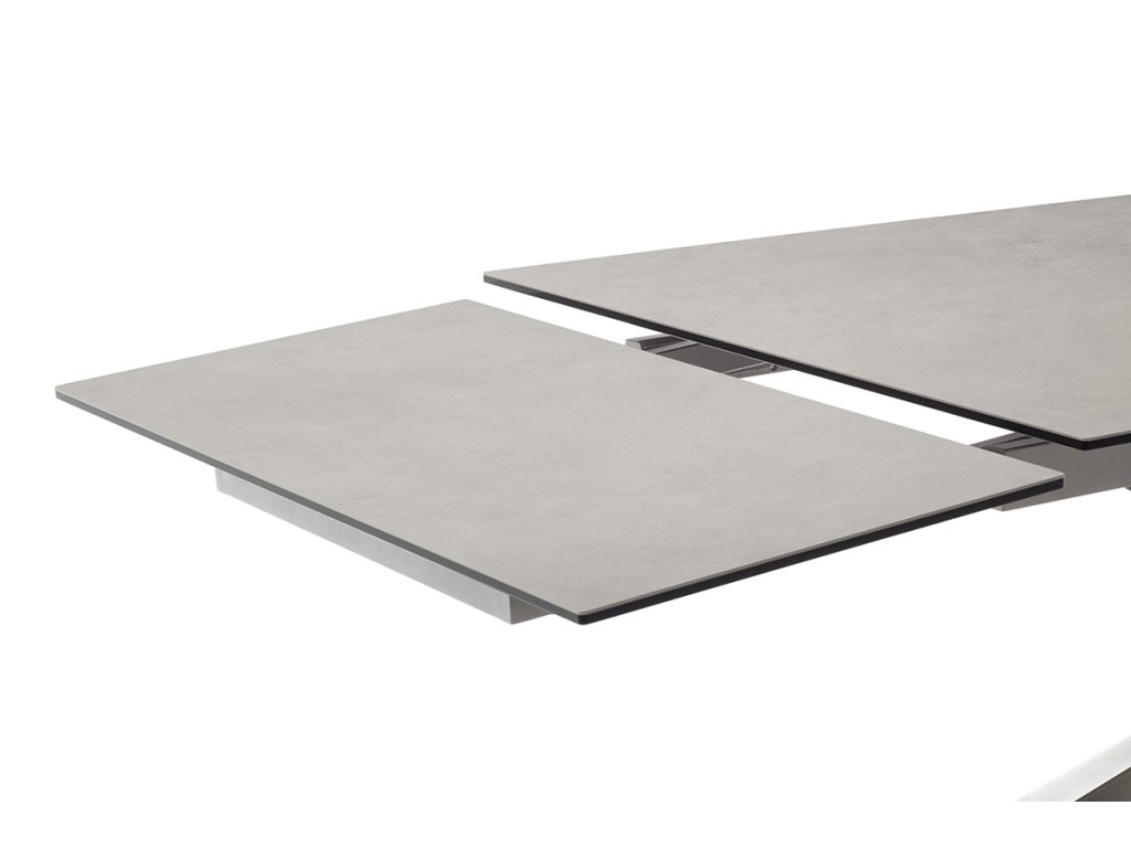 Jedálenský rozkladací stôl Tesero má základné rozmery dosky približne 200 x 95 cm. Vďaka funkčnému mechanizmu na oboch stranách sa však dá jednoducho rozšíriť až o celkovo 100 cm. Doska stola je z osvedčenej keramiky antracitovej farby a bezpečnostného skla. Táto kombinácia prináša extrémnu odolnosť a údržbu bez námahy. Podnož z brúsenej nehrdzavejúcej ocele svojím nadčasovým vzhľadom upúta nielen svojho majiteľa, ale aj prípadnú návštevu.