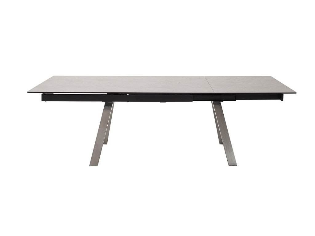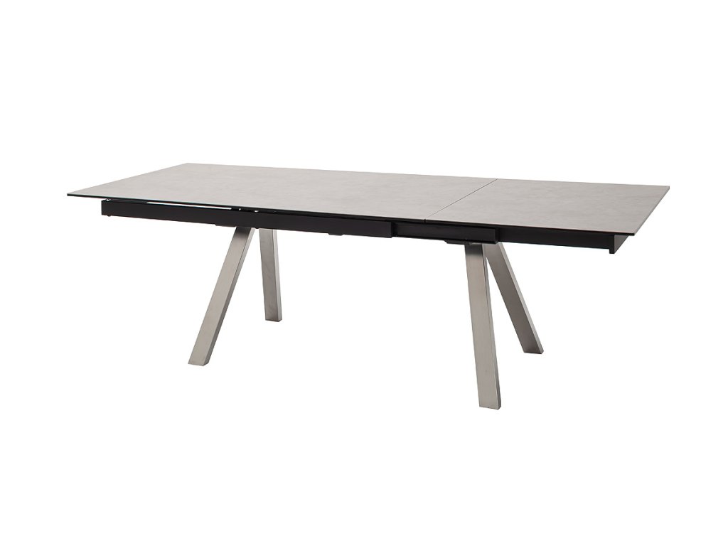 Jedálenský rozkladací stôl Tobago II patrí medzi najmodernejšie jedálenské stoly. Vsádza na spájanie moderných a štýlových materiálov, skla, keramiky a nerezovej ocele. Dosku stola z bezpečnostného skla a keramiky je možné rozložiť zo 180 cm až na 260 cm. Hrúbka dosky stola vrátane keramiky v svetlošedej farbe je 13 mm. Podopierajú ju štýlové šikmé nohy z brúsenej nerezovej ocele.