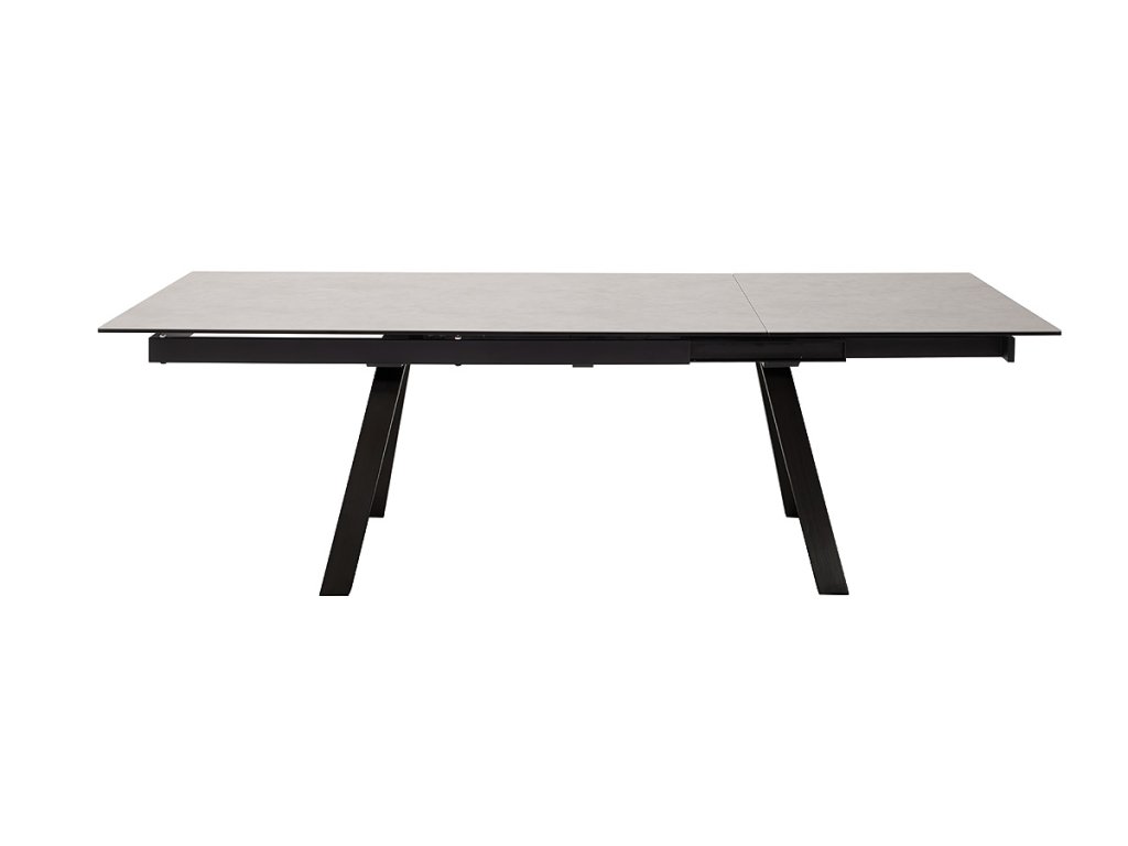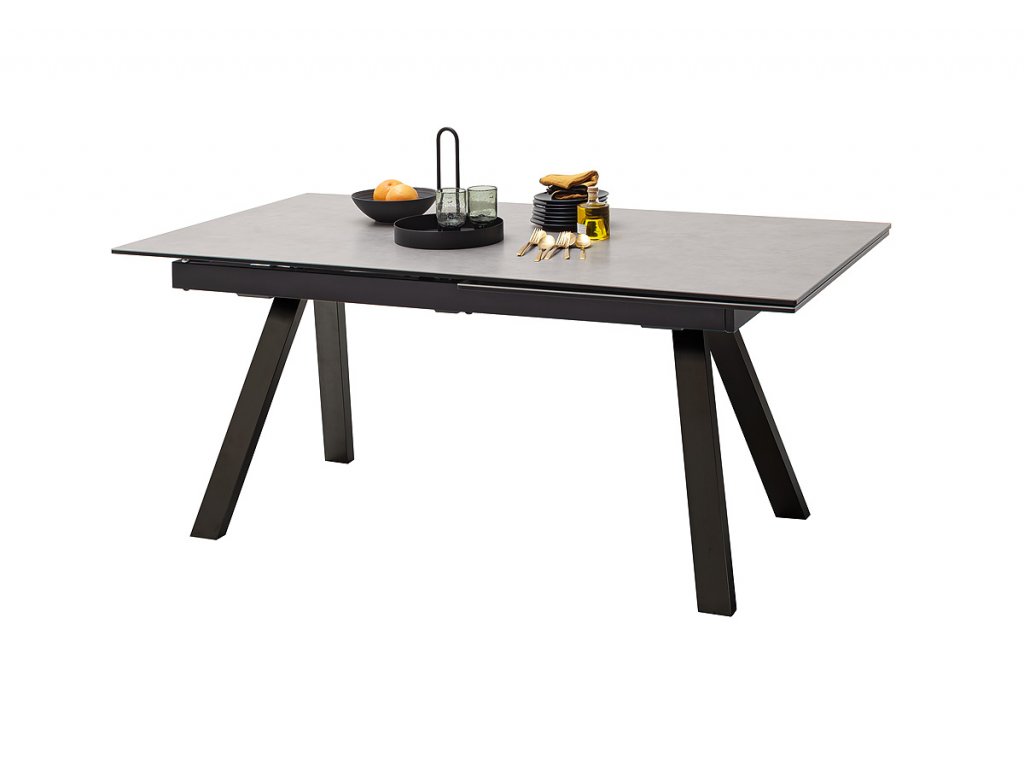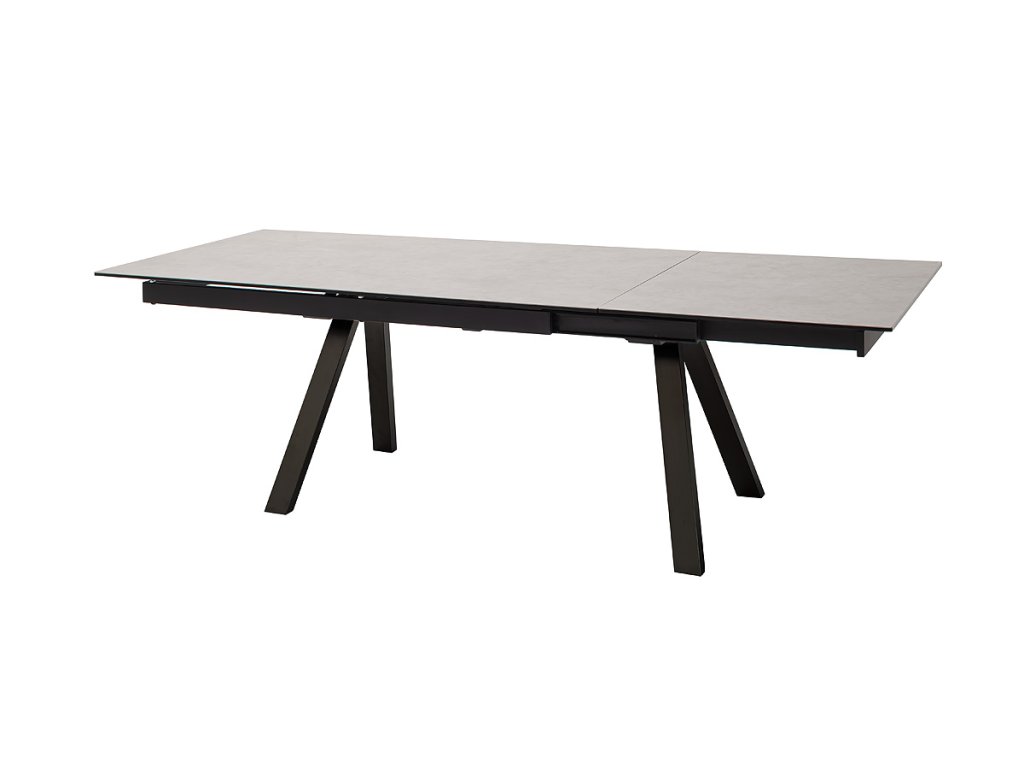 Jedálenský rozkladací stôl Tobago IV patrí medzi najmodernejšie jedálenské stoly. Vsádza na spájanie moderných a štýlových materiálov, skla, keramiky a kovu. Dosku stola z bezpečnostného skla a keramiky je možné rozložiť zo 180 cm až na 260 cm. Hrúbka dosky stola vrátane keramiky v svetlošedej farbe je 13 mm. Podopierajú ju štýlové šikmé kovové nohy pokryté matným čiernym lakom.