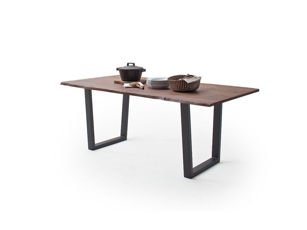 Nádherný masívny stôl z dreva akácie v 3 farebných prevedeniach - akácia sivá, akácia orech ( tmavší odtieň) a akácia natur ( bledší odtieň ) s podnožou trapez antracit - lichobežník. Stolová doska má na dlhšej strane nádherný autentický stromový okraj.