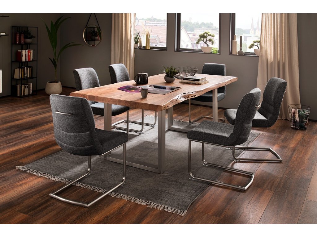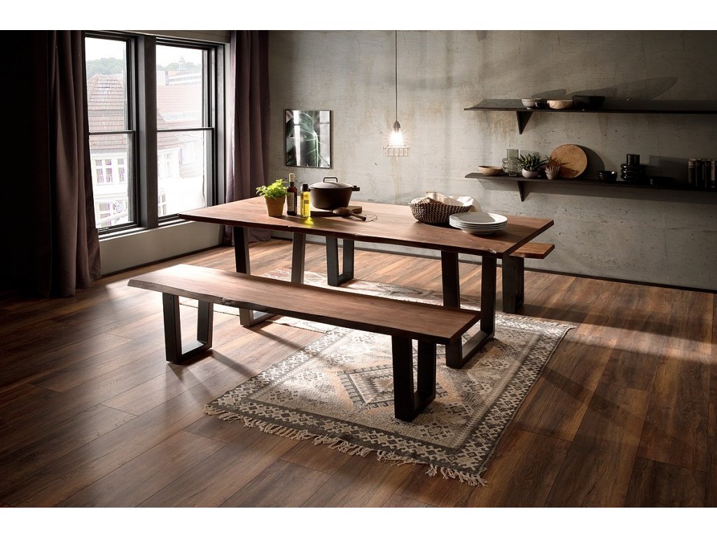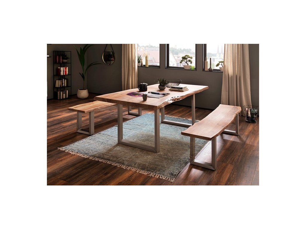 Nádherný masívny stôl z dreva akácie v 3 farebných prevedeniach - akácia sivá, akácia orech ( tmavší odtieň) a akácia natur ( bledší odtieň ) s podnožou v tvare "U" antické prevedenie - "ošúchaný dizajn". Stolová doska má na dlhšej strane nádherný autentický stromový okraj.
