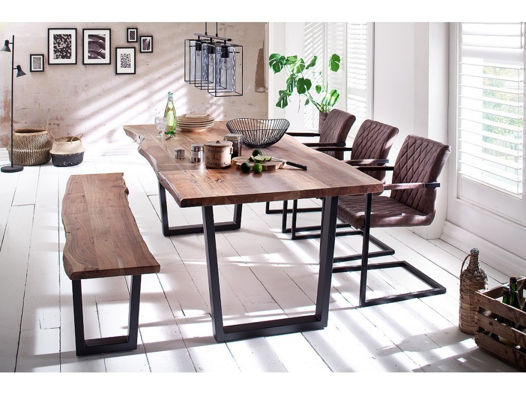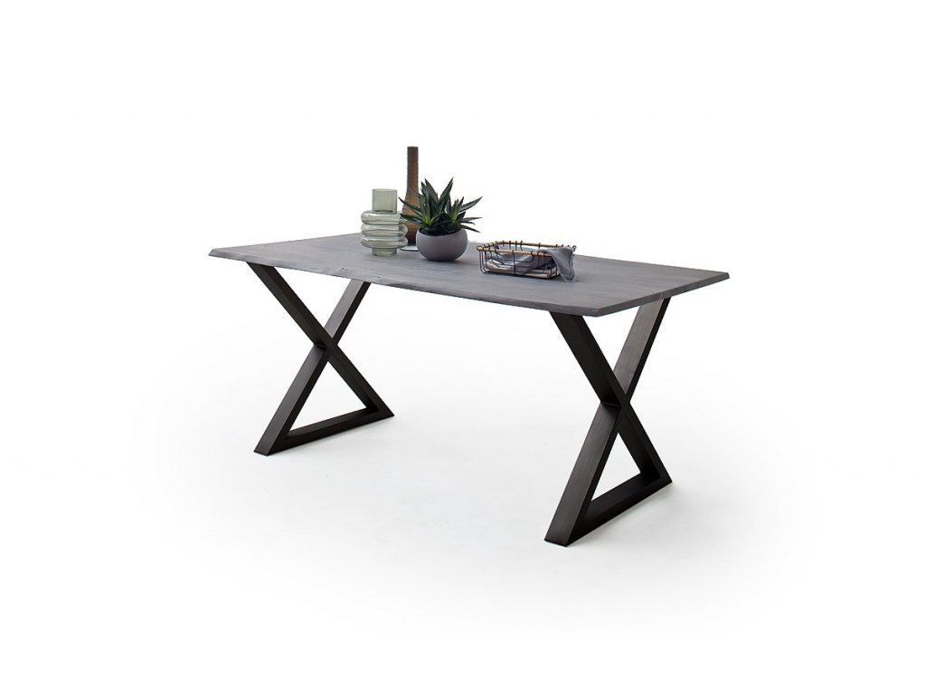 Nádherný masívny stôl z dreva akácie v 3 farebných prevedeniach - akácia sivá, akácia orech ( tmavší odtieň) a akácia natur ( bledší odtieň ) s podnožou v tvare "X" antracit. Stolová doska má na dlhšej strane nádherný autentický stromový okraj.