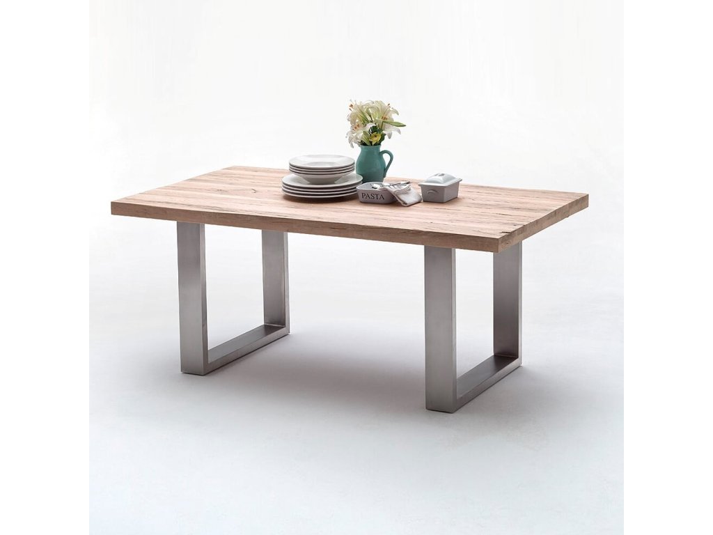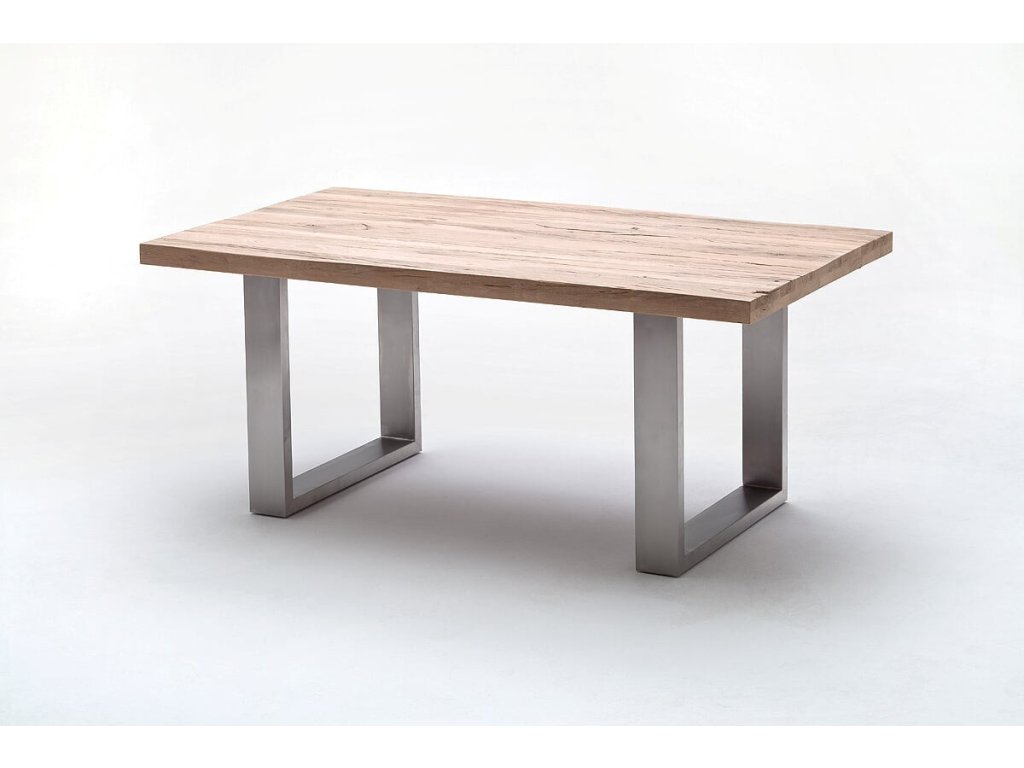 Na jedálenskom stole Castello vás neupúta len jeho surový masívny vzhľad. Aj tento stôl patrí ako napríklad stôl Matras medzi jedinečné unikáty. Štyri druhy stromov, štyri rôzne prevedenia. Každý zo stromov, ktoré boli použité pri výrobe rastie v iných klimatických podmienkach, čo sa odráža na jedinečnej farebnosti, vzore, zakrivení a trhlinách. Jednoducho ORIGINÁL. Masívnej dubovej doske stola s hrúbkou 6 cm poskytuje pevnú podporu dvojica podnoží v tvare písmena U z nerezovej ocele.