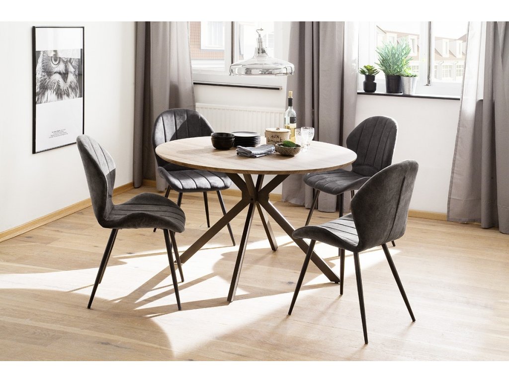 Okrúhly kompaktný jedálenský stôl pre 4 osoby s doskou v dekore dub divoký a podnožou v antracitovej farbe bude ideálnym kúskom do Vašej kuchyne alebo jedálne.1ks = 2 balíky = 31 kg