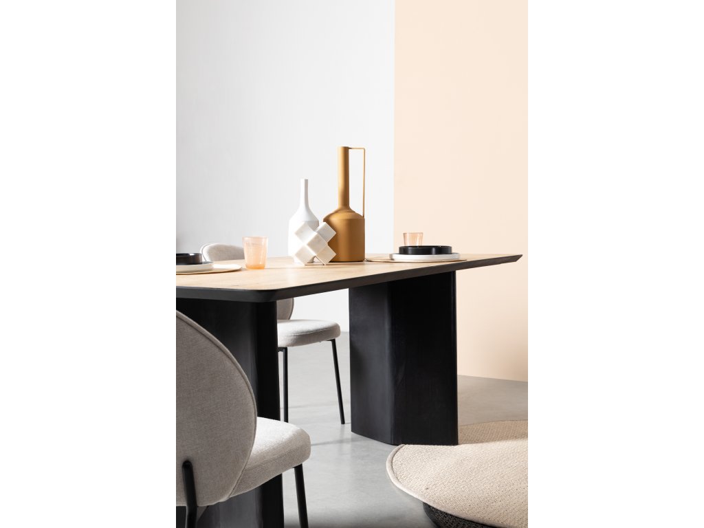 Moderný jedálenský stôl  z dubovej dýhy s prírodnou povrchovou úpravou na vodnej báze. Tento nadčasový a zároveň minimalistický jedálenský stôl bude praktickou a štýlovou voľnou vo vašom interiéri.
