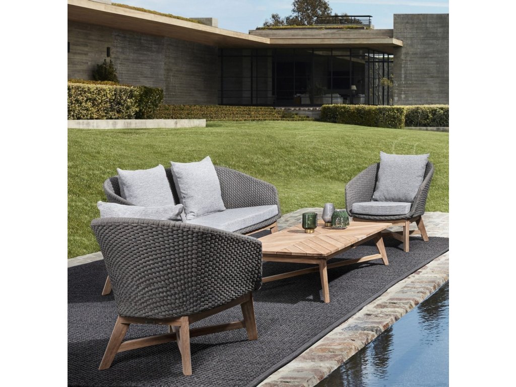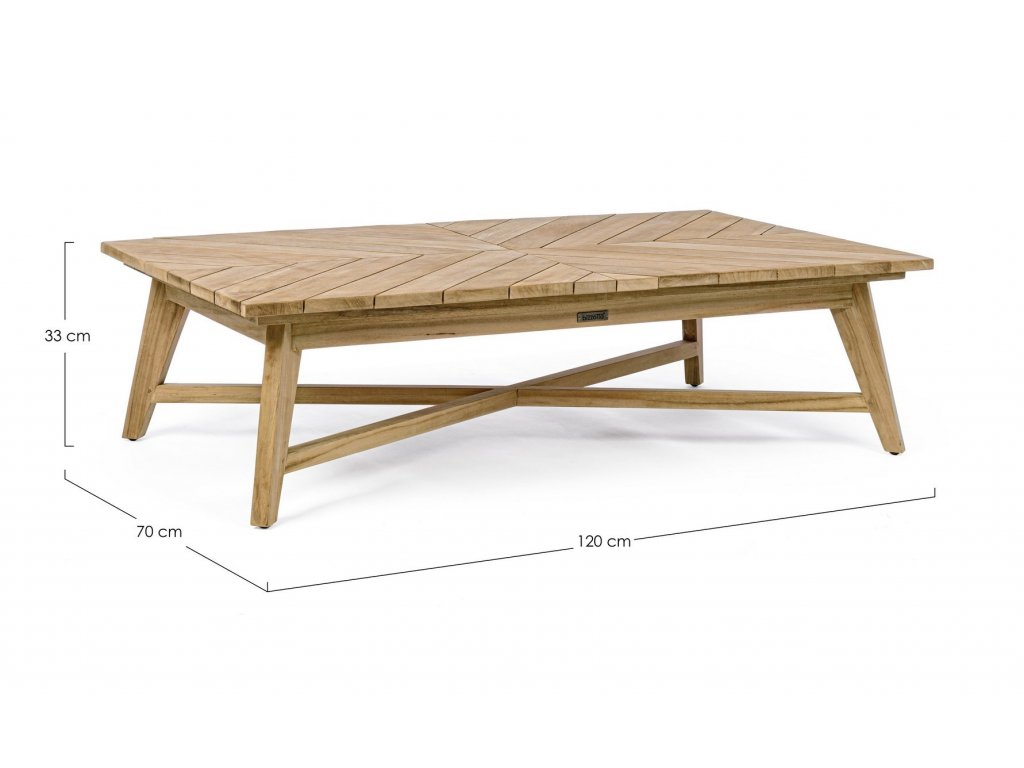 Dizajnový kávový stolík z kolekcie vonkajšieho nábytku Coachella. Stolík je vyrobený z indonézskeho prírodného dreva. Unikátnosť kávovému stolíku dodáva uloženie lamiel na hornej ploche ktoré sú v tvare stromčeka. Stolík skvele zapadne k iným produktom z kolekcie Coachella ako sú kreslá, pohovka, jedálenské či barové stoličky. V ponuke sa nachádzajú aj ďalšie kúsky z tejto kolekcie, stačí do vyhľadávania zadať "COACHELLA" pre ich zobrazenie.
