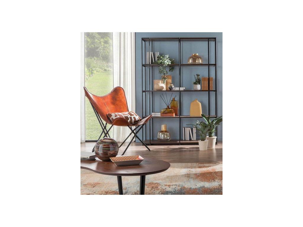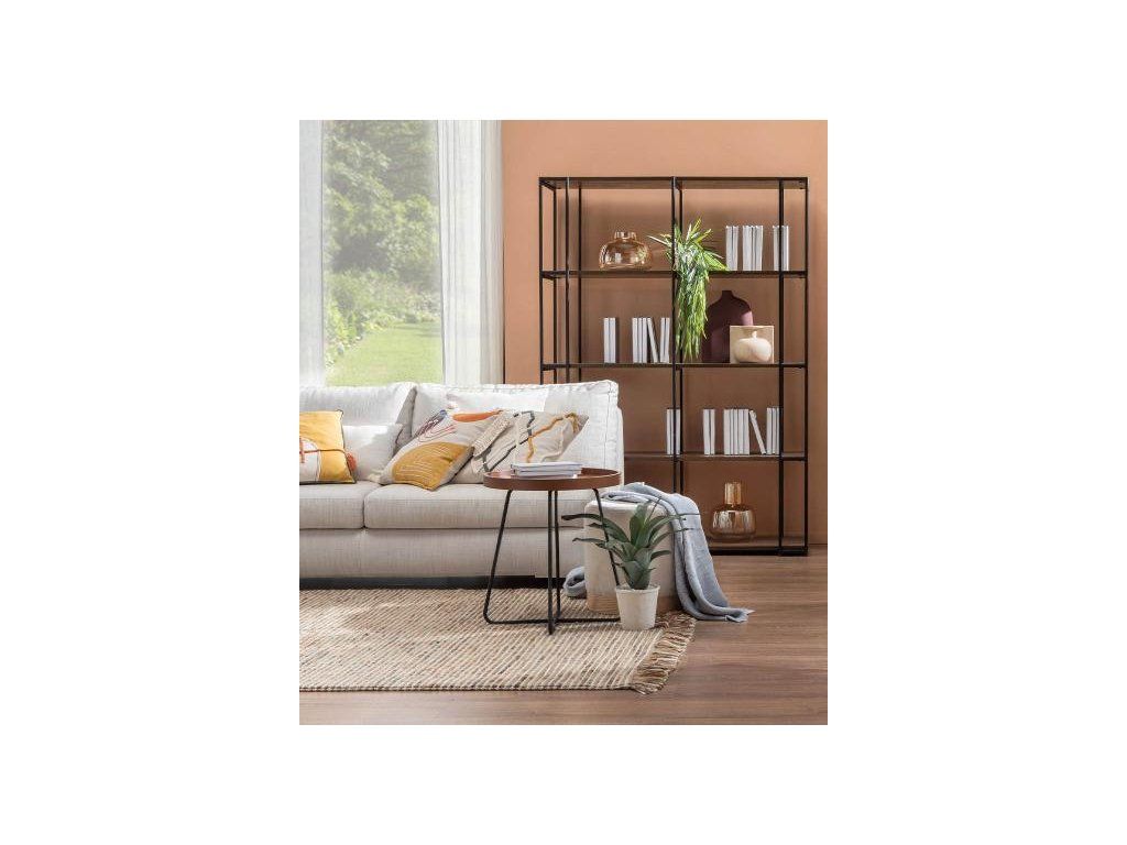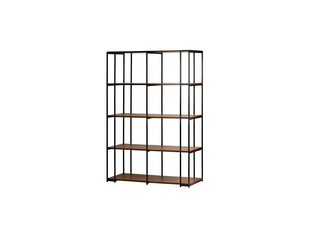 Knižnica so 4 policami s čiernou kovovou konštrukciou