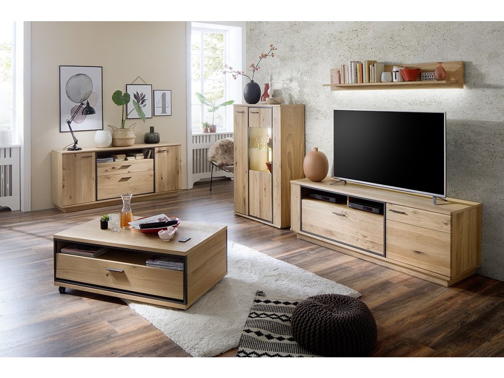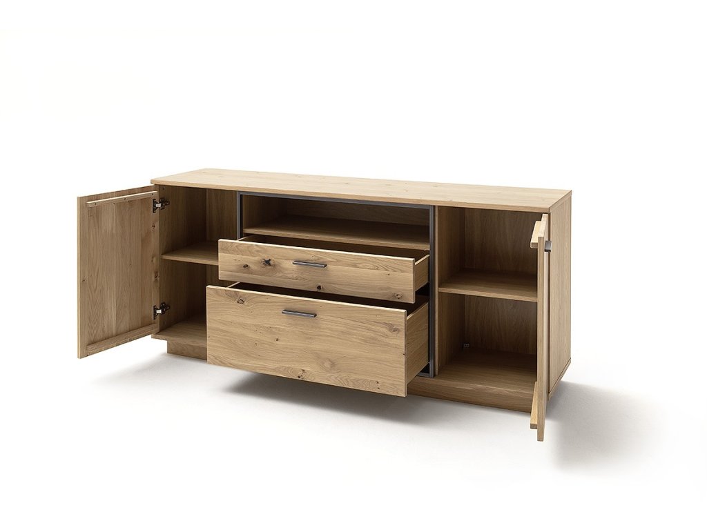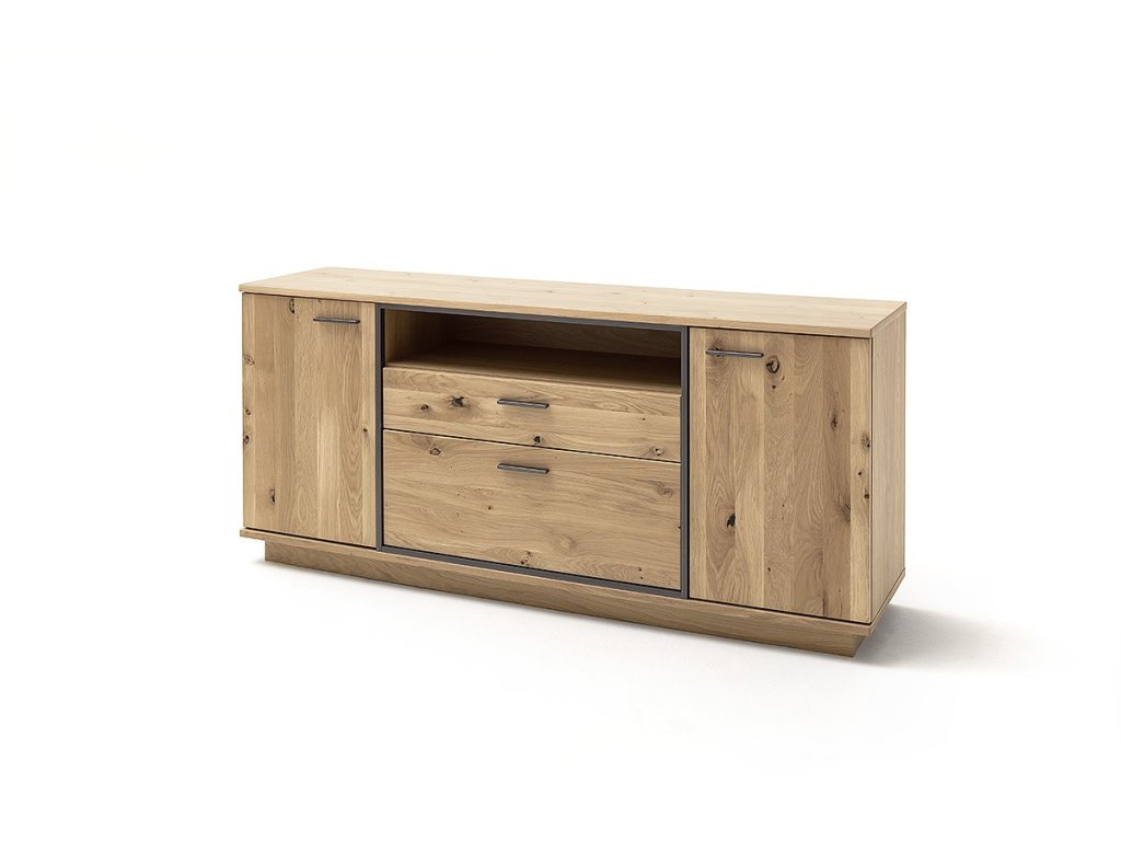 Dizajnová komoda z dubu bianco a kovovou antracitovou konštrukciou. Komoda ponúka dve zásuvky, dve skrinky a policu ako úložný priestor. V ponuke sa nachádzajú aj ďalšie kúsky z tejto kolekcie, stačí do vyhľadávania zadať "CAMPINAS" pre ich zobrazenie.