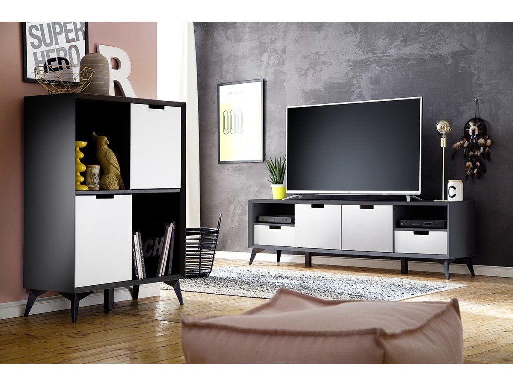 Nadčasová komoda v jedinečnom dizajne ktorý sa hlavne vyznačuje kombináciou farieb sivej a bielej. Komoda stojí na vyvýšených nohách čo umožňuje dobrý prístup pod komodu. Komoda disponuje skrinkami a zásuvkami. Má dokonca možnosti prispôsobenia jej vzhľadu: dvierka sa dajú otočiť o 180°. Každá strana dvierok je lakovaná inou farbou. V závislosti od smeru zatvorenia dvierok môže byť predná strana biela alebo sivá.
