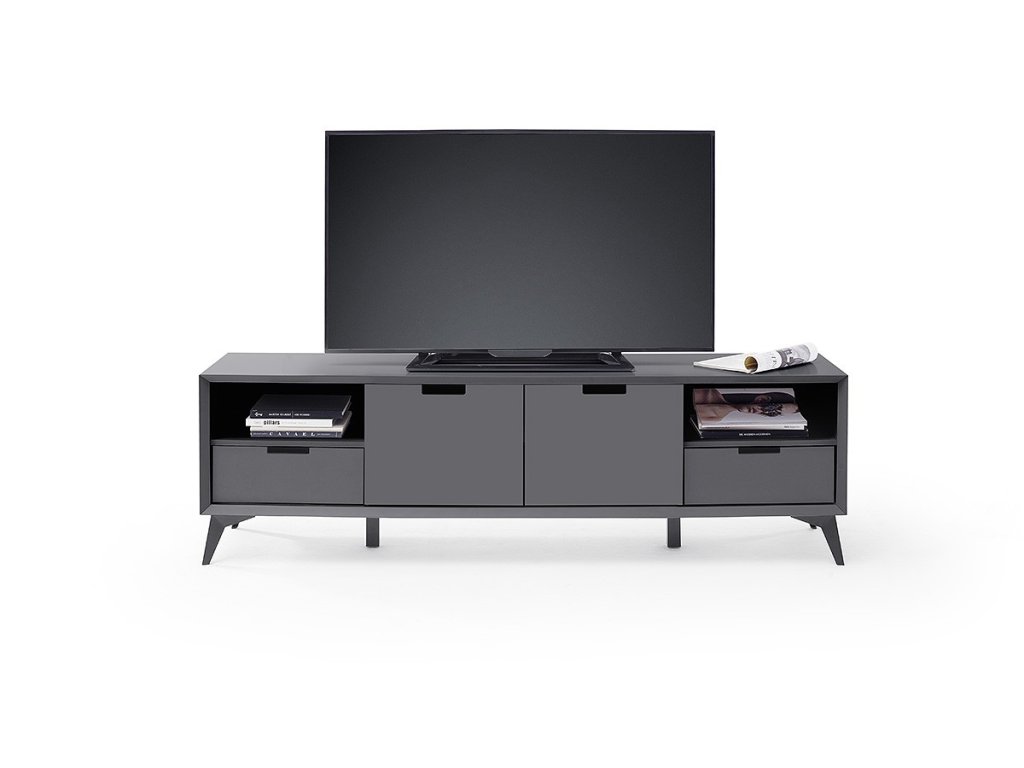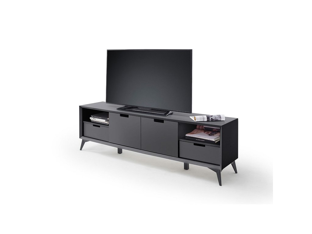 Nadčasová komoda v jedinečnom dizajne ktorý sa hlavne vyznačuje kombináciou farieb sivej a bielej. Komoda stojí na vyvýšených nohách čo umožňuje dobrý prístup pod komodu. Komoda disponuje skrinkami a zásuvkami.