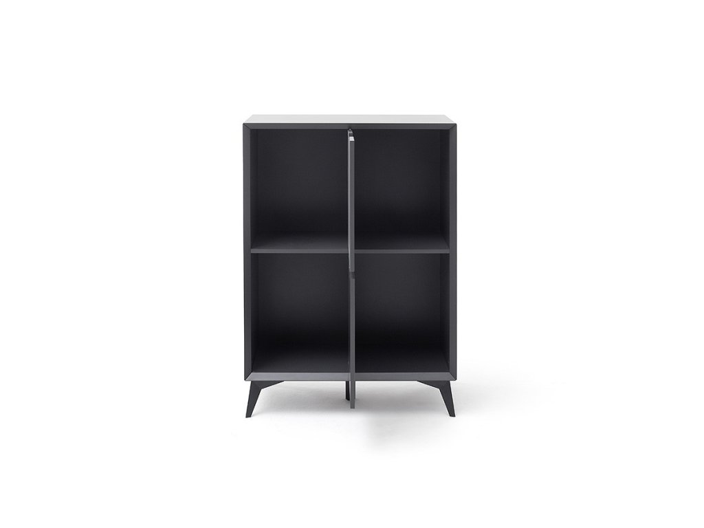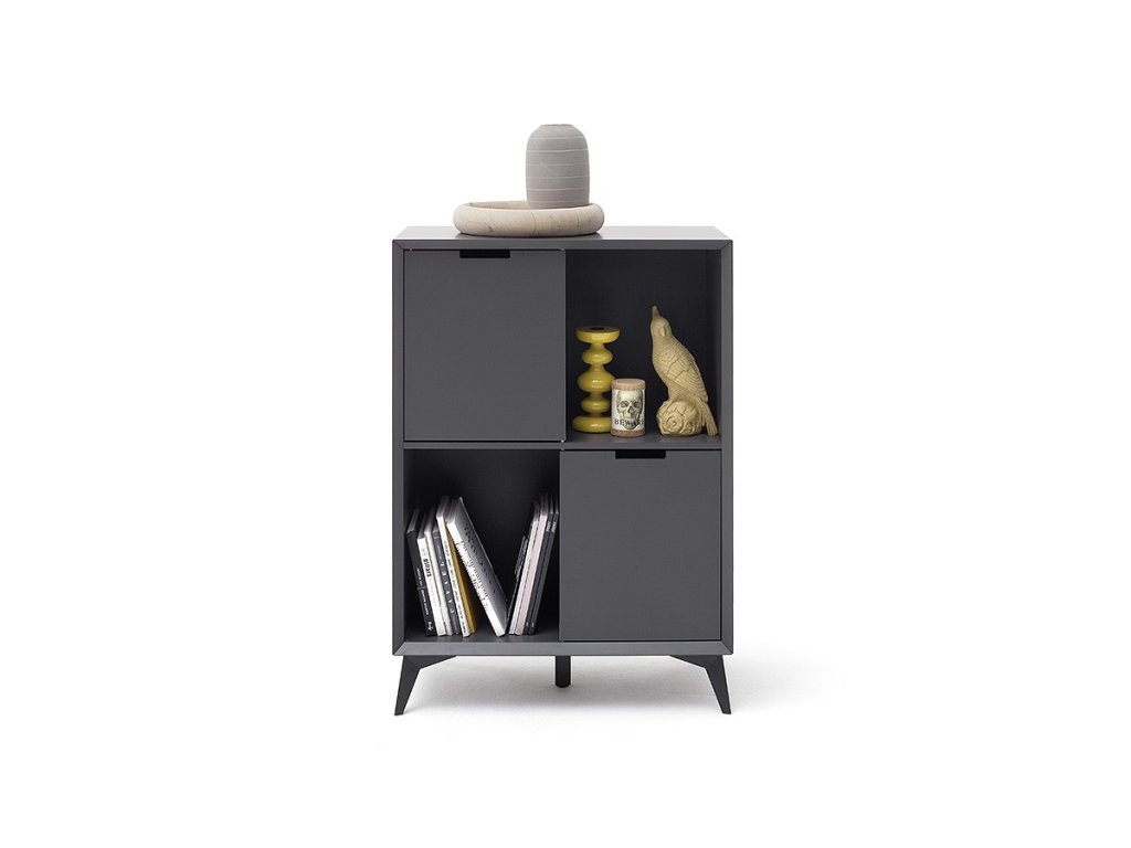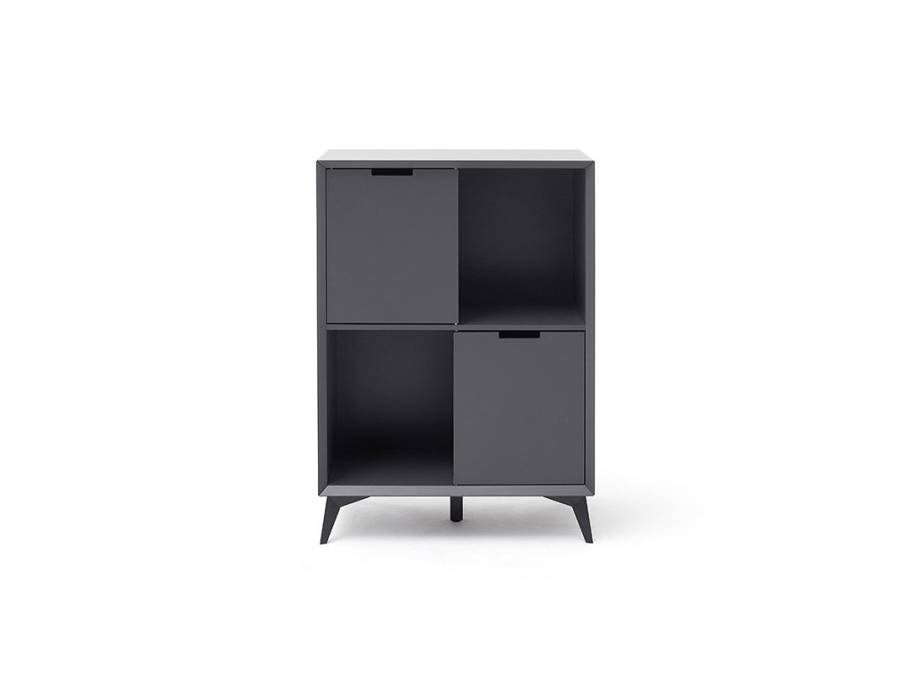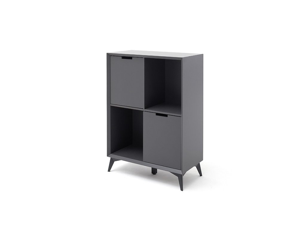 Nadčasová komoda v jedinečnom dizajne ktorý sa hlavne vyznačuje kombináciou farieb sivej a bielej. Komoda stojí na vyvýšených nohách čo umožňuje dobrý prístup pod komodu. Komoda disponuje skrinkami a zásuvkami.