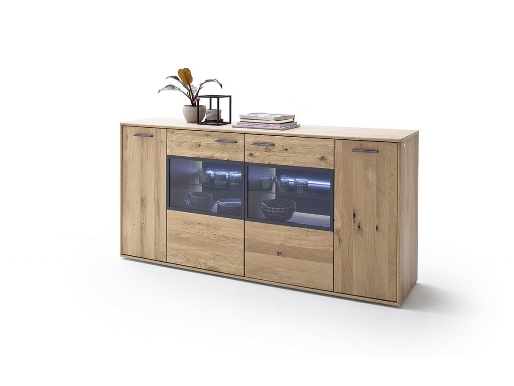 Dizajnová komoda v prevedení dub Bianco v kombinácii s antracytovými prvkami a imitáciou dubového dekoru. Komoda disponuje úložným priestorom v podobe skriniek s dvierkami, dvierkami so sklom a voliteľným LED podsvietením. V ponuke sa nachádzajú aj ďalšie kúsky z tejto kolekcie, stačí do vyhľadávania zadať "PORTLAND" pre ich zobrazenie.