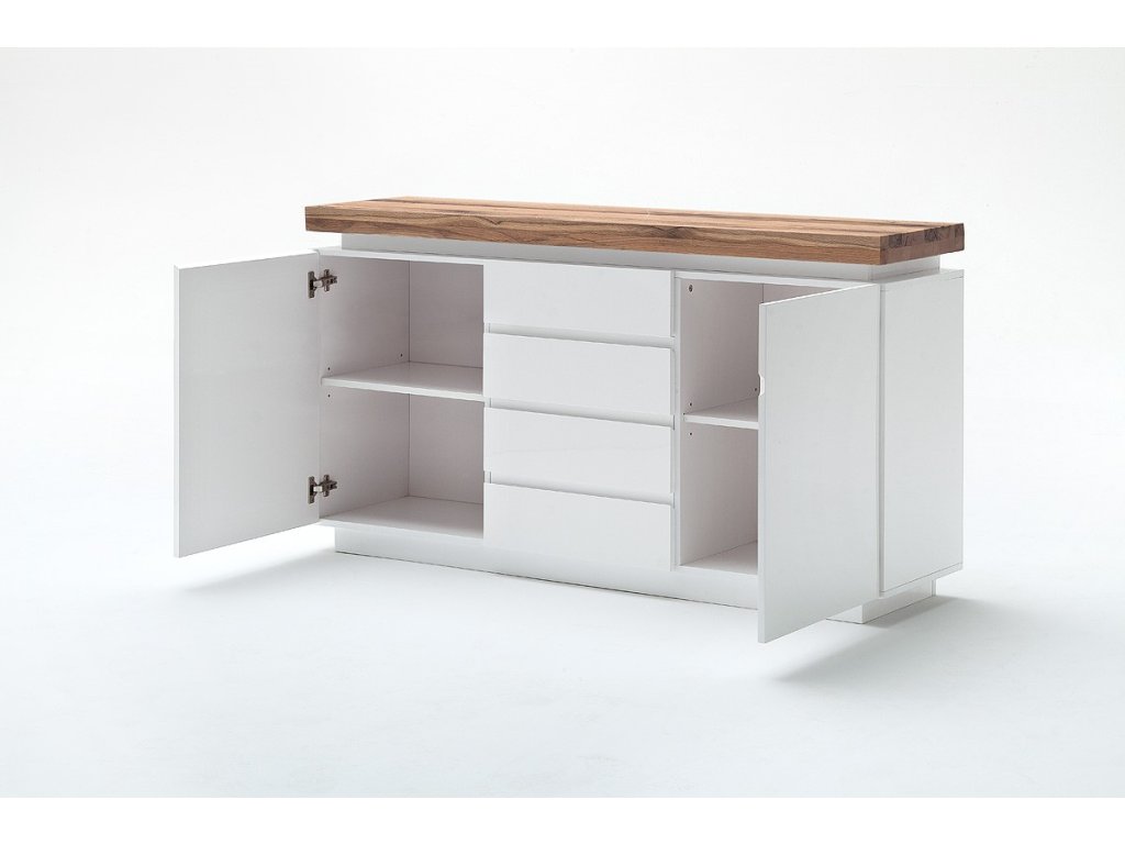 Nadčasová komoda s čistými líniami ktorej dizajn je doplnený o prvok z dubového masívu. Horná doska z masívu v hrúbke 6cm. V ponuke sa nachádzajú aj ďalšie kúsky z tejto kolekcie, stačí do vyhľadávania zadať "ROMINA" pre ich zobrazenie.
