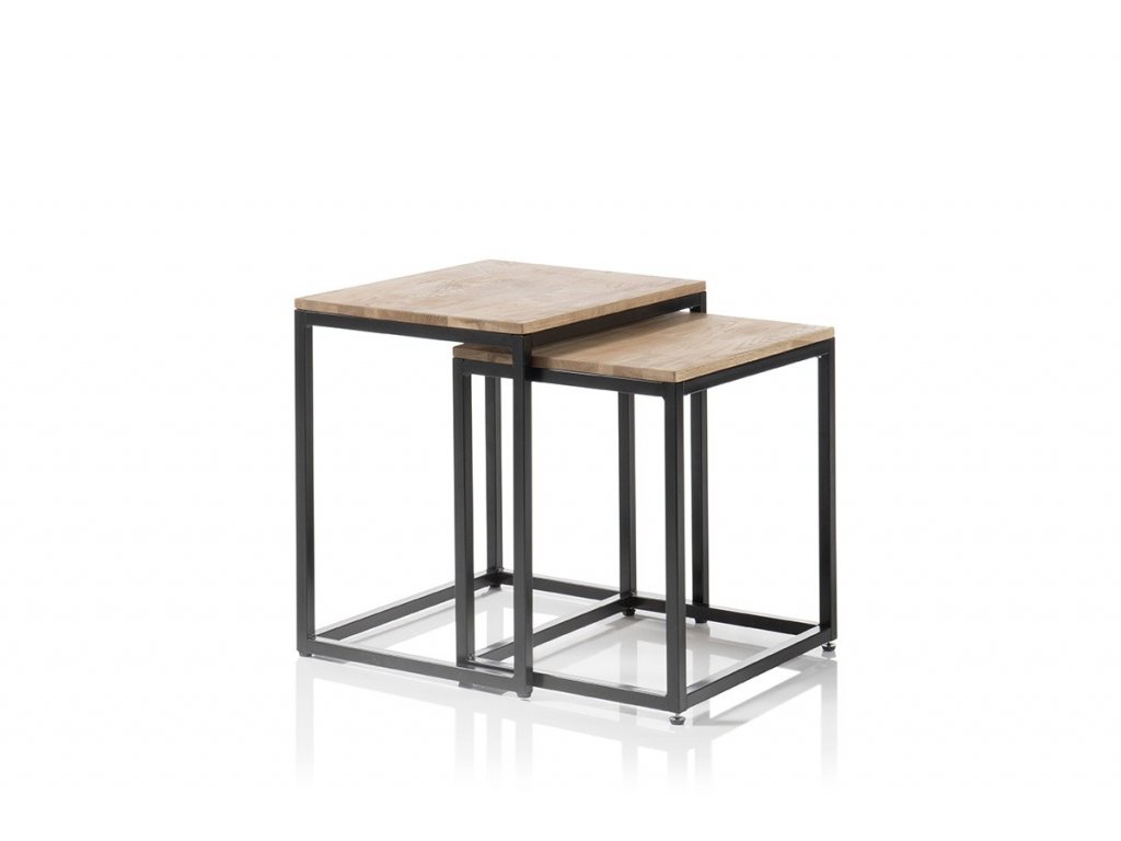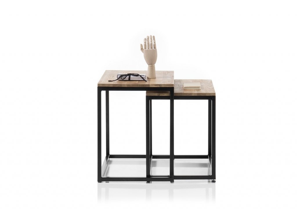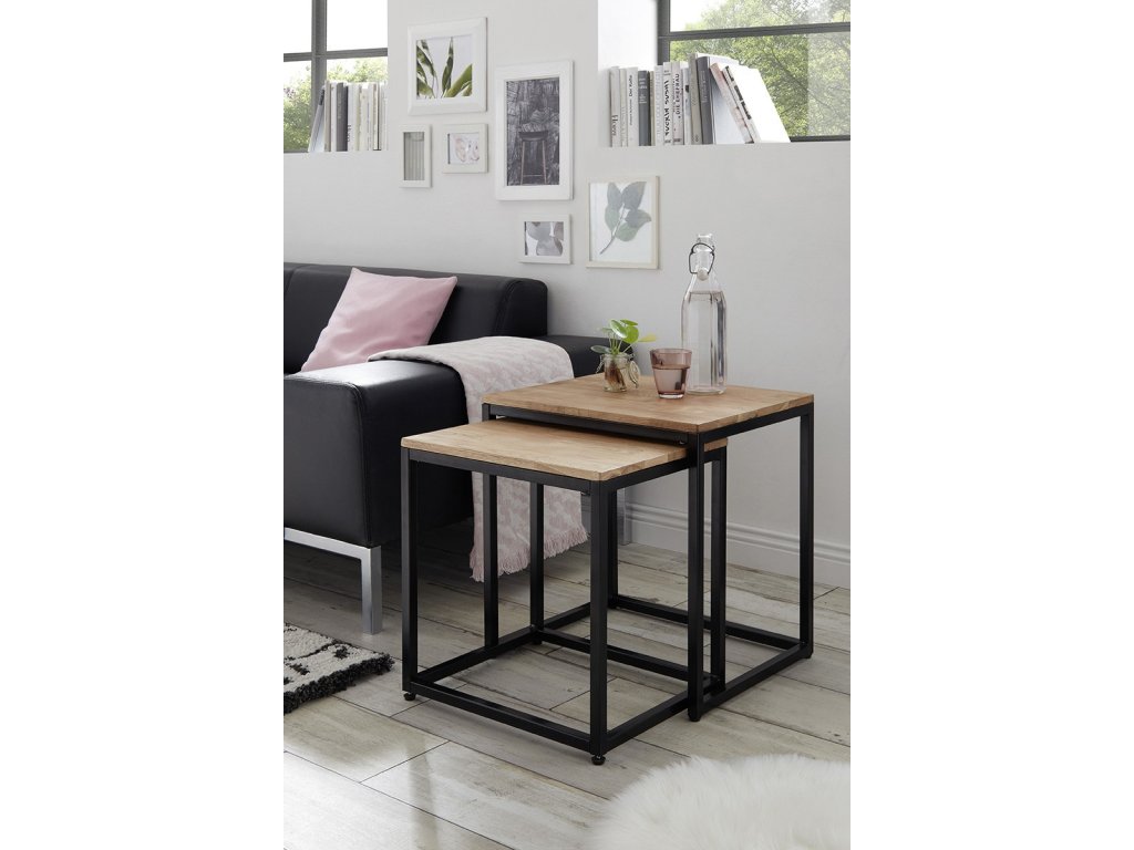 Set 2 stolíkov Sakura zaujme moderným priemyselným dizajnom a čistými líniami. Kombinácia dubového masívu a čierneho kovu predurčuje tieto príručné stolíky zdobiť interiér v industirálnom duchu. Doska stola je ošetrená olejom, ktorý tvorí na povrchu ochrannú vrstvu a zároveň krásne zvýrazní kresbu dreva. Kovový čierny rám o rozmere 2 x 2 cm. K stolíkom dostupný aj konferenčný stôl Sakura na výber v dvoch rozmeroch.1ks = 1 set = 1 balík = 12,5 kg