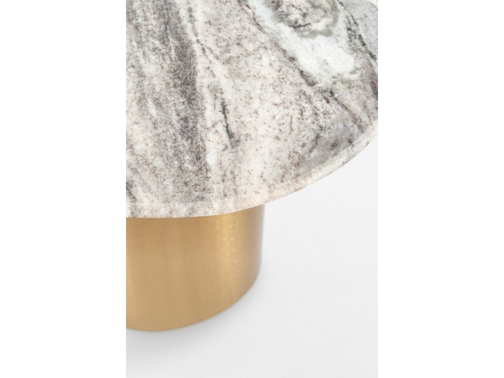 Moderný mramorový kávový stolík s nohou z ocele lakovanej do zlatej farby. Štýlový okrúhly stolík do honosných priestorov. Kvalitná mramorová doska v kombinácii so zlatou farbou zaručene upúta každý pohľad.