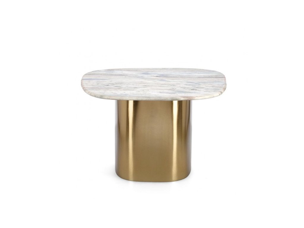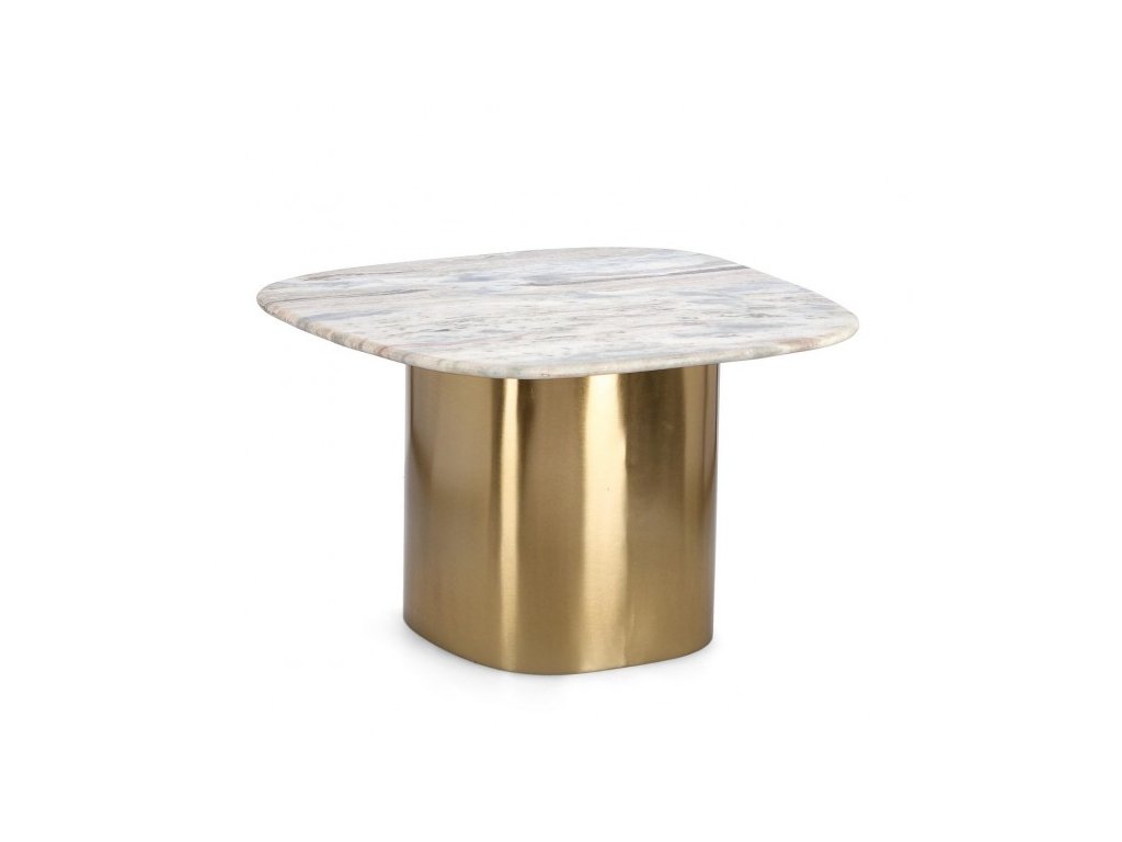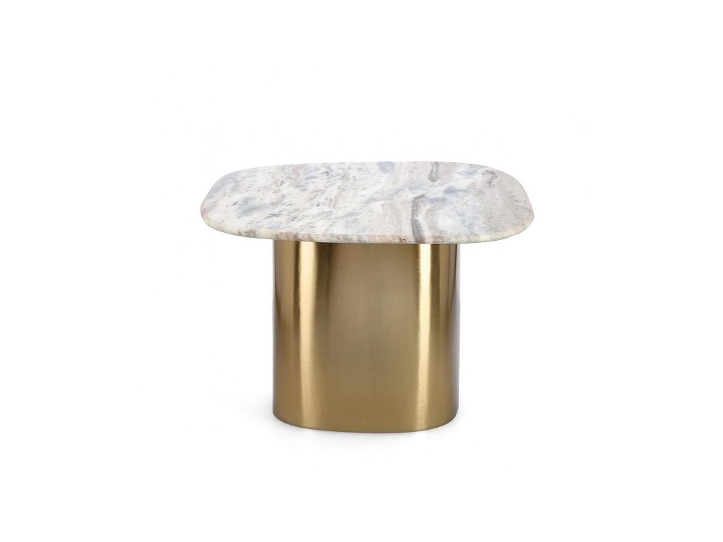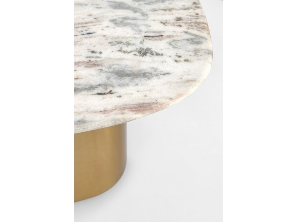 Moderný mramorový kávový stolík s nohou z ocele lakovanej do zlatej farby. Štýlový stolík do honosných priestorov. Kvalitná mramorová doska v kombinácii so zlatou farbou zaručene upúta každý pohľad.