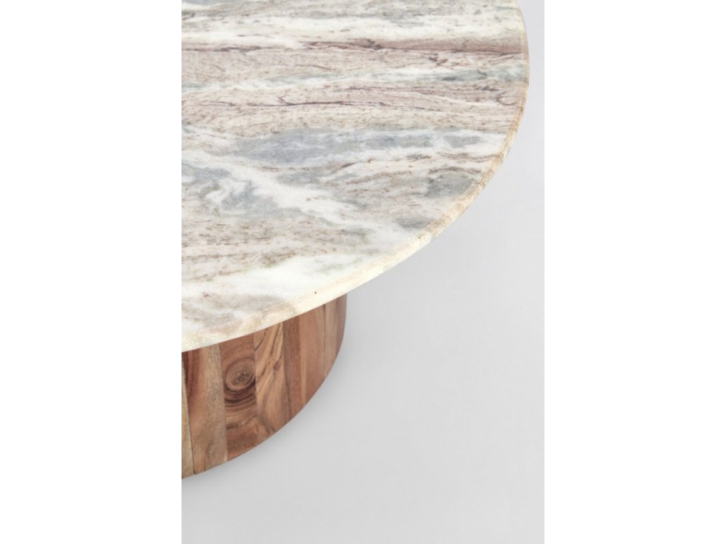Moderný konferenčný stolík z mramoru a dreva. Nohu stola tvorí akáciové drevo, vrchná doska je z mramoru. Kvalitný kávový stolík do modernej obývačky. Kombinácia dreva a mramoru predstavuje nadčasový kus nábytku.