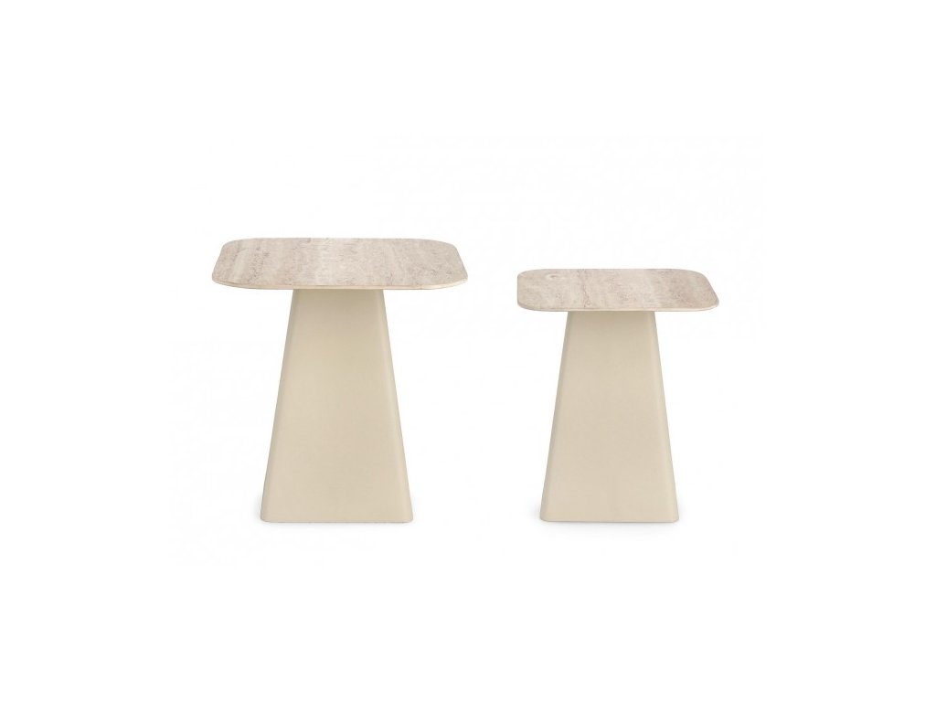 Set dvoch kusov konferenčných stolíkov s keramickou doskou a travertínovou epoxidovou oceľovou základňou. Moderné štvorcové konferenčné stolíky do obývačky, pracovne či kancelárie.