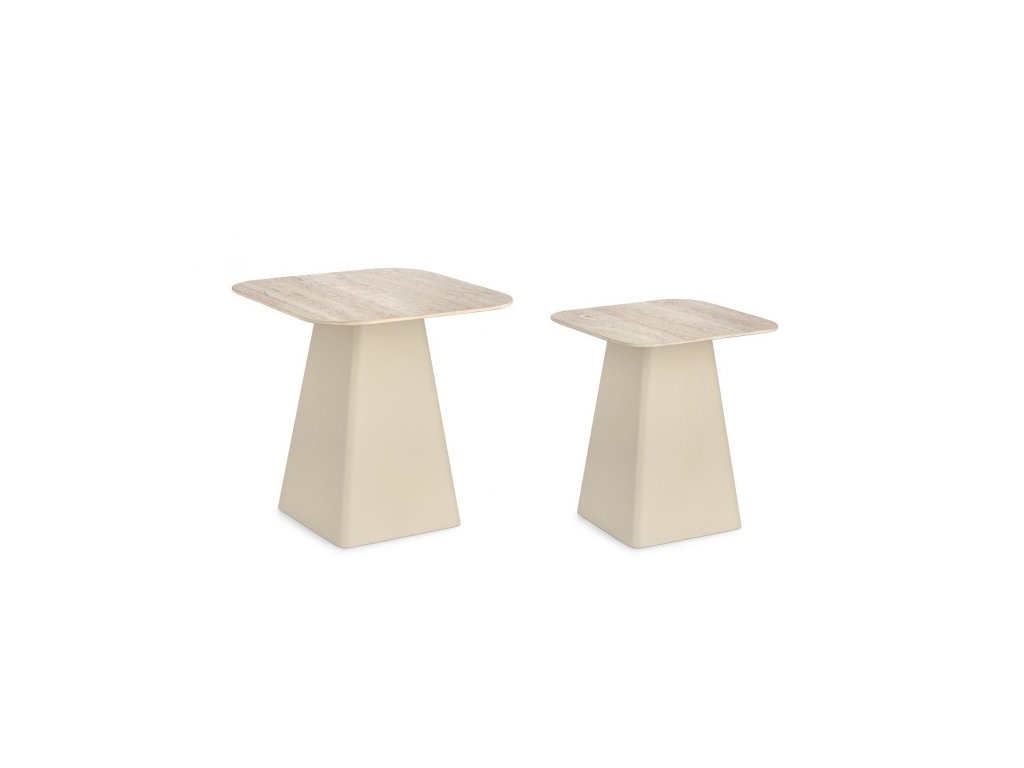 Štvorcové konferenčné stolíky do moderného interiéru. Zostava kávových stolíkov v krémovej farbe.