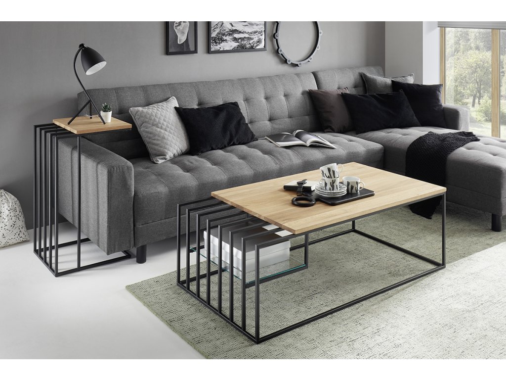 Štvorcový konferenčný stolík Juba sa vyznačuje jednoduchým, ale funkčným dizajnom. Pevná kovová podnož je pokrytá čiernou práškovou farbou. Doska stola je vyrobená z tvrdého dubového ojejovaného dreva. Je vynikajúcim doplnkom ku konferenčnému stolu Juba dub.
