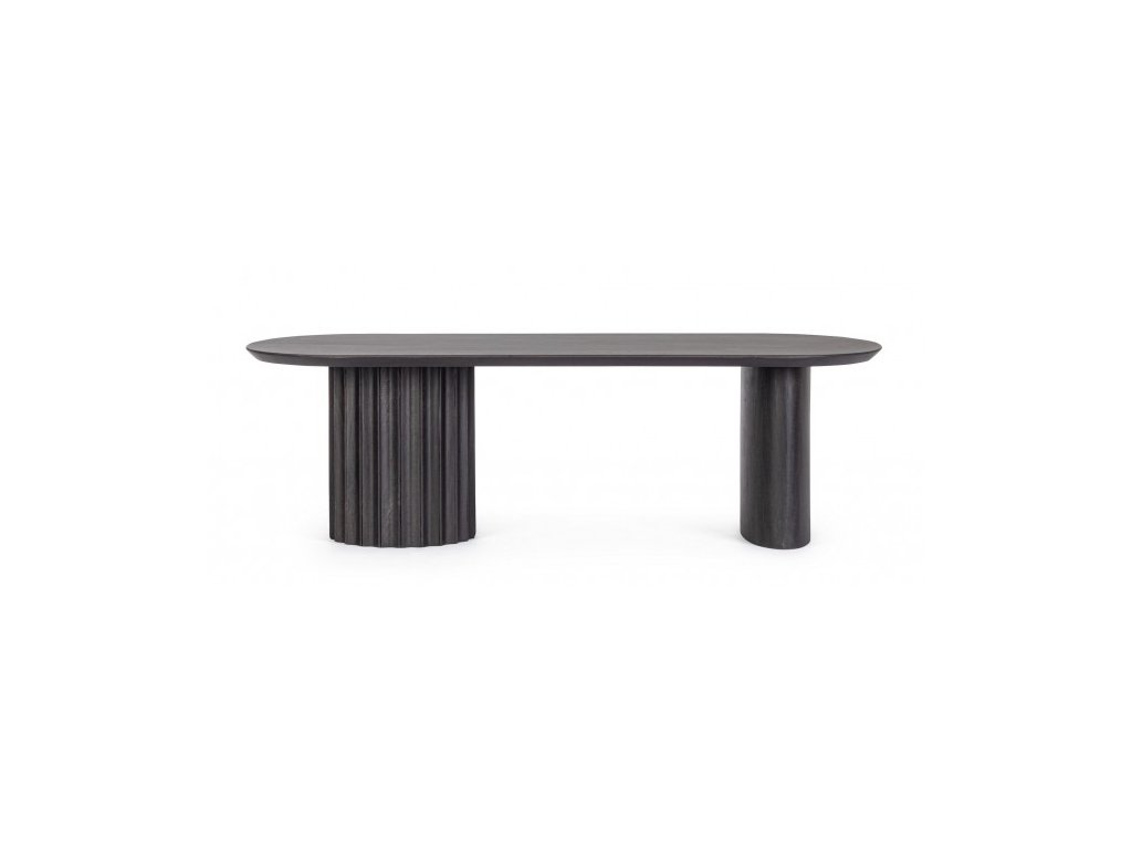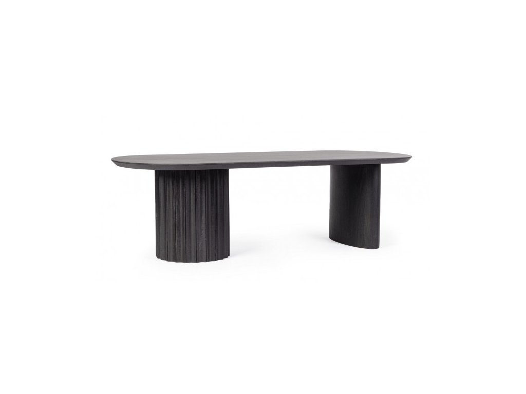 Konferenčný stolík Orissa v čiernom prevedení vyrobený z pevnej štruktúry mangového dreva a vyznačuje sa elegantným povrchom na báze nitrocelulózy, ktorý zvýrazňuje prirodzenú krásu dreva.