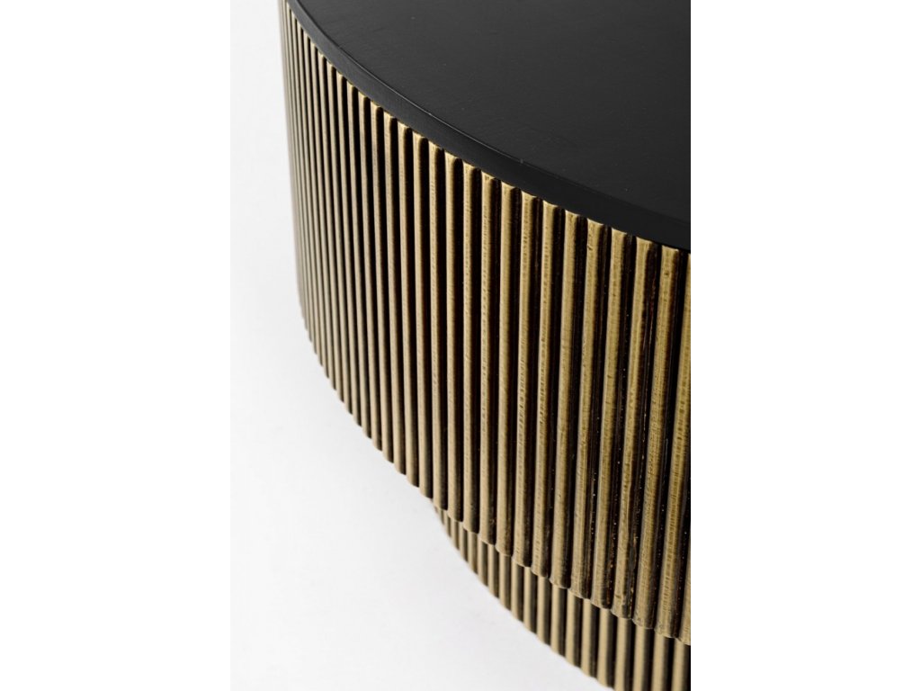 Vrchná doska z mangového dreva dodáva teplý a prirodzený tón, zatiaľ čo povrchová úprava na báze nitrocelulózy chráni a zvýrazňuje prirodzenú krásu dreva, vďaka čomu je každý konferenčný stolík originál.