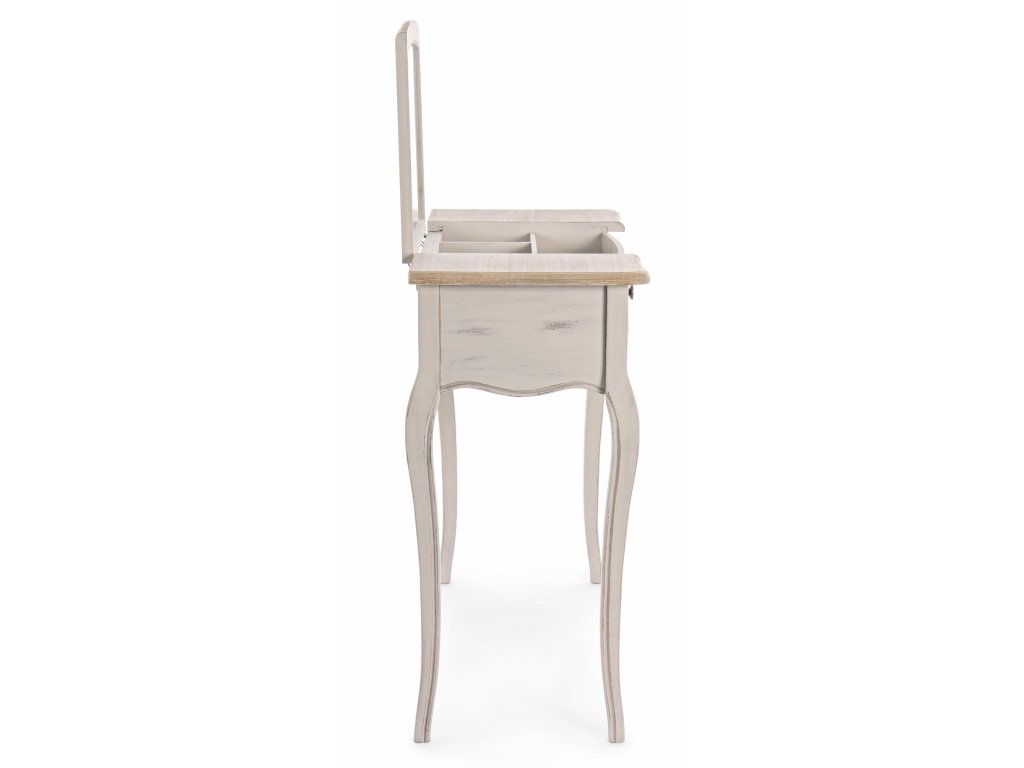 Povrchová úprava matnou farbou na vodnej báze nielenže chráni stolík pred poškodením, ale tiež stolíku dodáva elegantný a jemný vzhľad. Oceľové úchyty pridávajú konzole štipku industriálneho štýlu a zároveň zabezpečujú ľahké otváranie a zatváranie.