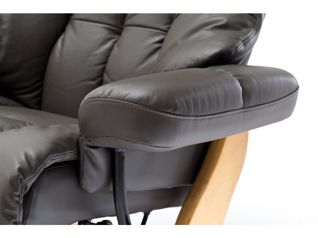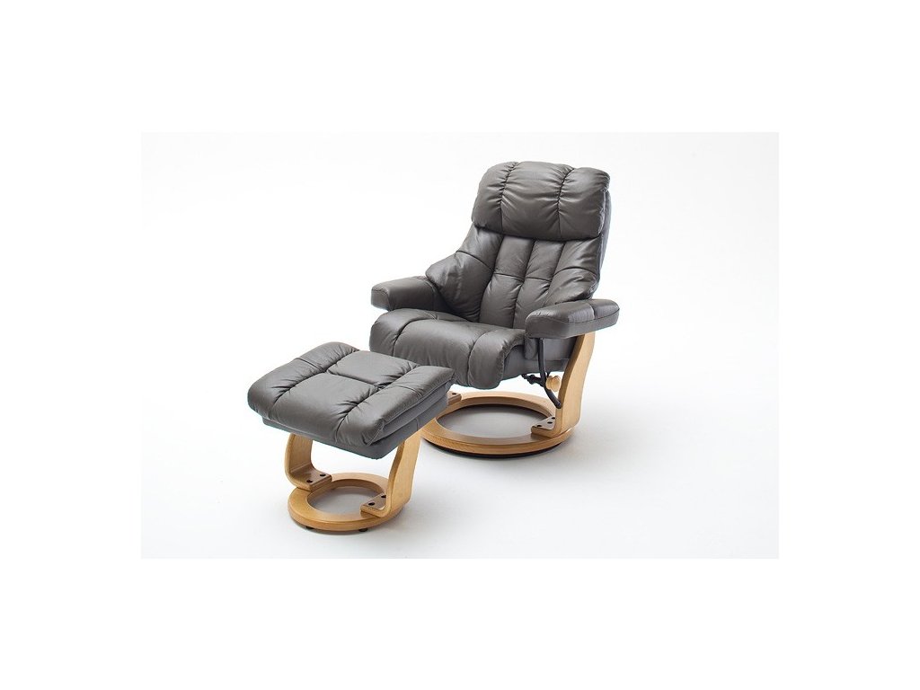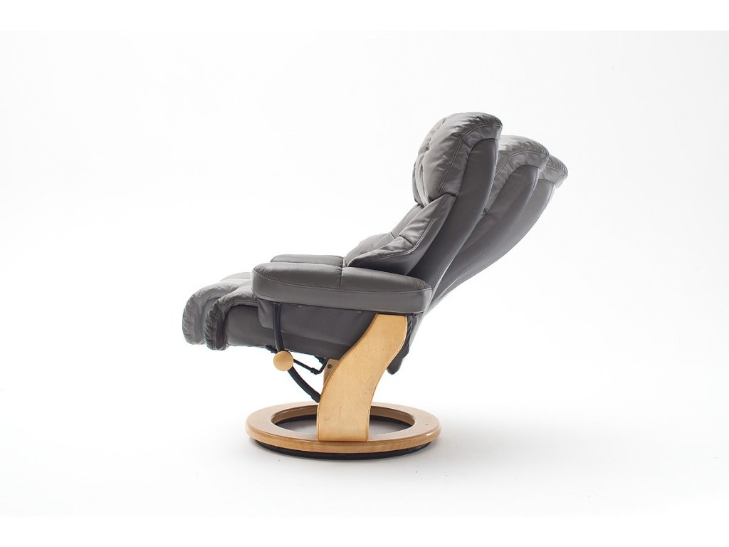 Kvalitné kožené kreslo s praktickou podnožkou, ktorá disponuje úložným priestorom, sa ideálne hodí do moderných i štýlových interiérov. Toto luxusné kreslo je polohovateľné a samozrejme otočné. Má čalúnenené lakťové opierky a nastaviteľné operadlo telesným tlakom / 135° /. Moderný dizajn, prvotriedne prevedenie a vskutku pohodlné sedenie. Je už len na vás, pre ktorý typ podstavy sa rozhodnete. Taburetka je súčasťou kresla.