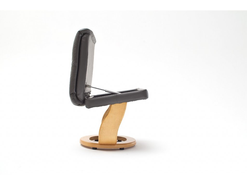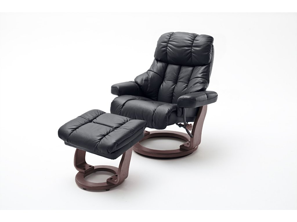 Exkluzívne kožené kreslo s praktickou podnožkou, ktorá disponuje úložným priestorom, sa vyznačuje kvalitným a veľmi pohodlným sedením. Relaxačné kreslo je polohovateľné a samozrejme otočné. Má čalúnenené lakťové opierky a nastaviteľné operadlo telesným tlakom / 135° /. Kreslo predstavuje zároveň i luxusný doplnok do obývacej izby či pracovne. Stačí si už iba vybrať prevedenie podstavy.
