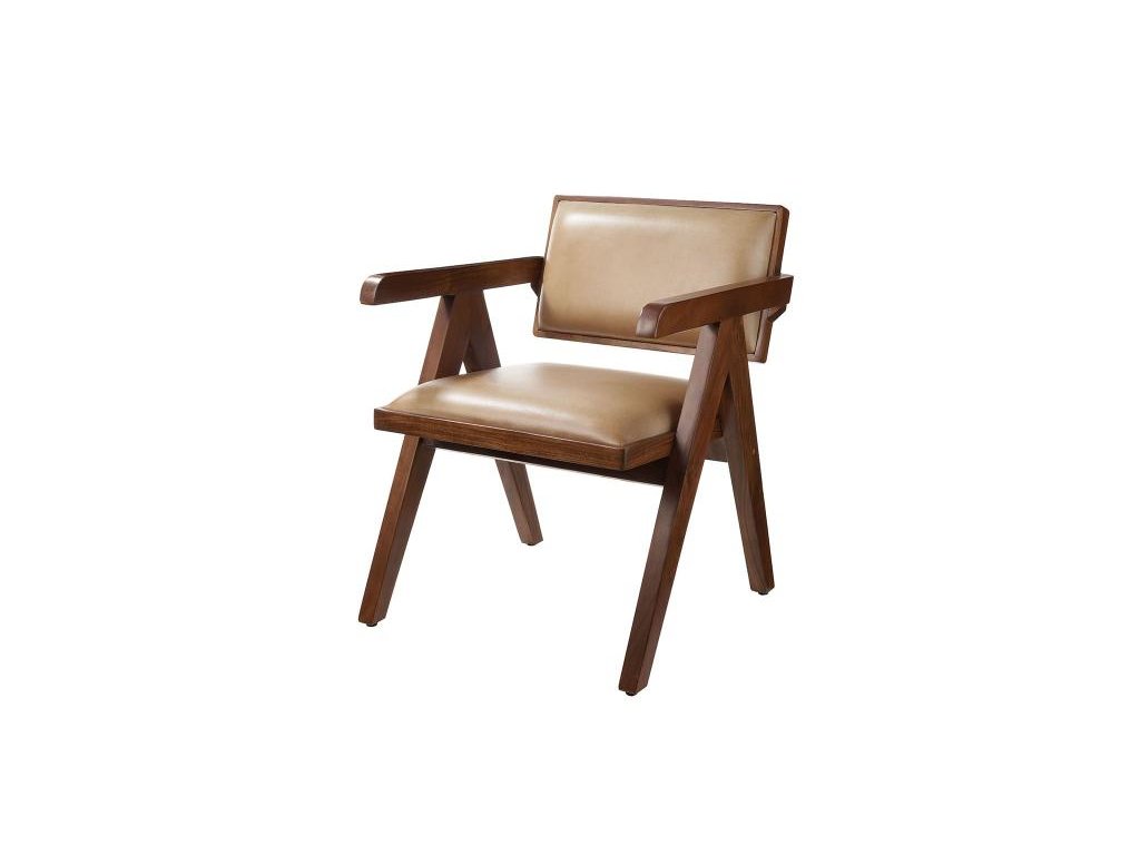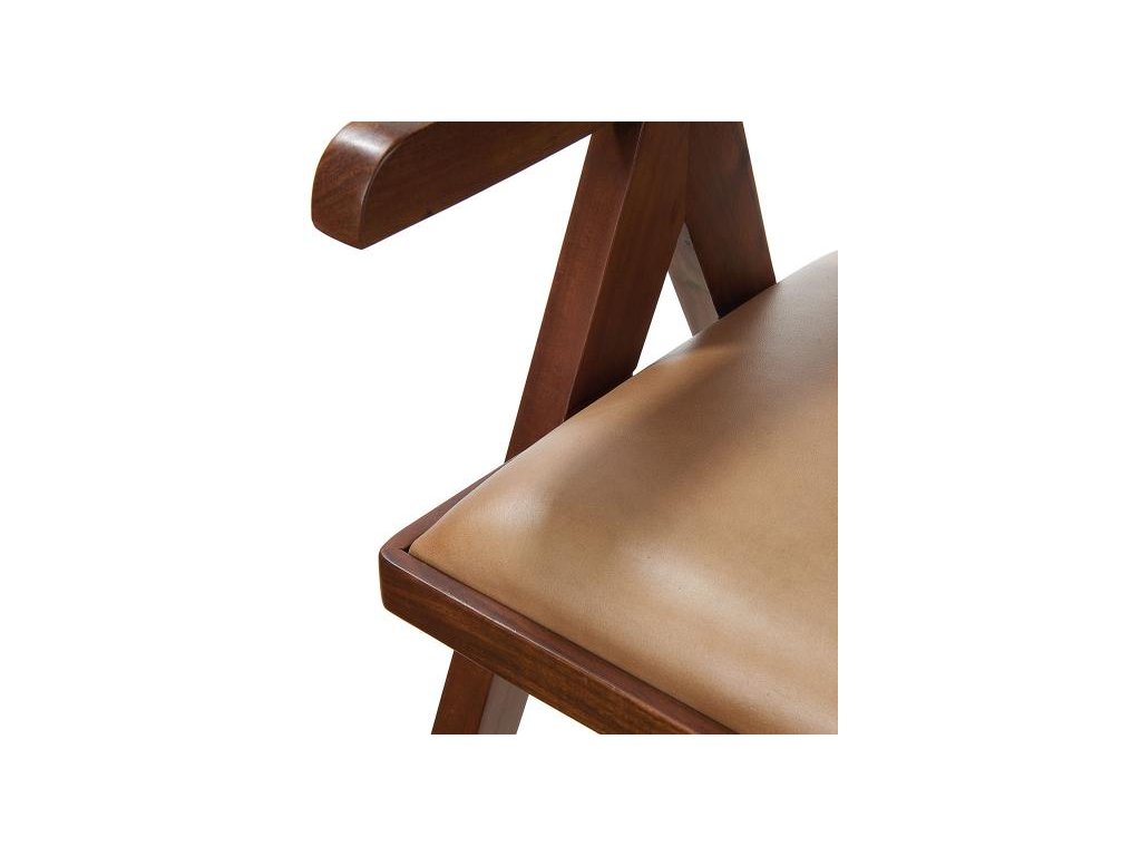 Kreslo s koženým operadlom a sedákom a drevenou konštrukciou