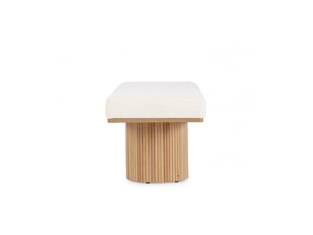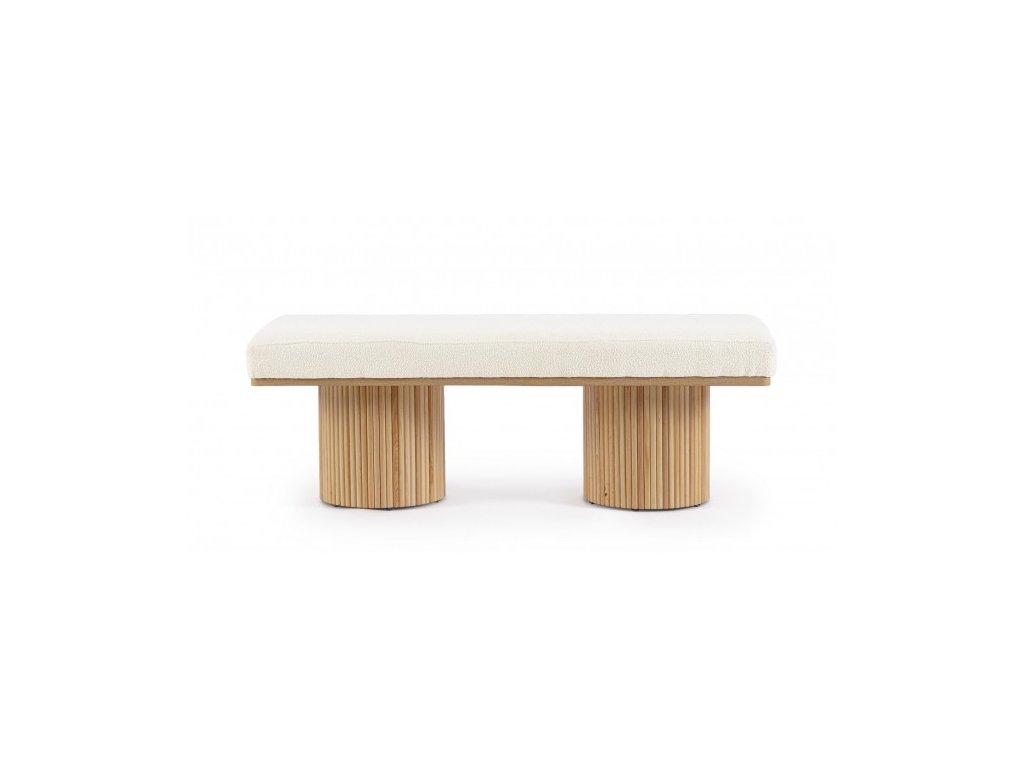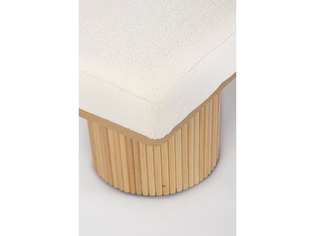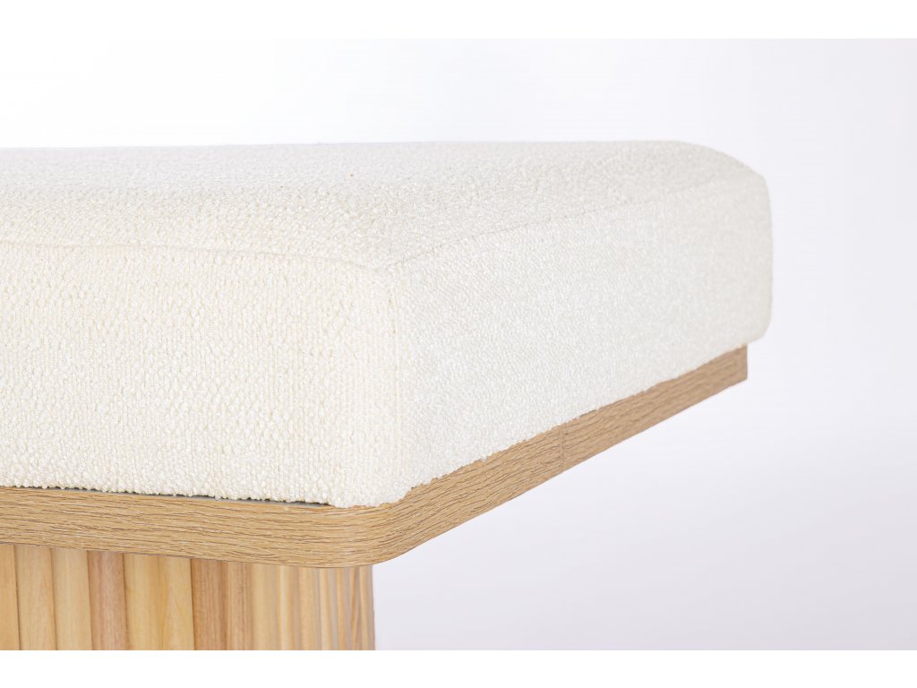Sedadlo, ktoré je skutočným stredobodom tejto lavice, je čalúnené luxusnou polyesterovou tkaninou s efektom bouclé, ktorá ponúka pôžitkársky hmatový zážitok a nadčasovú eleganciu. Výplň s hustotou 30 kg/m³ zaručuje maximálny komfort, vďaka čomu je táto lavica príjemným miestom na oddych.