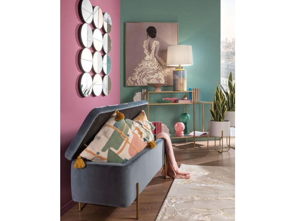 Lavica s úložným priestorom sivo-modrá