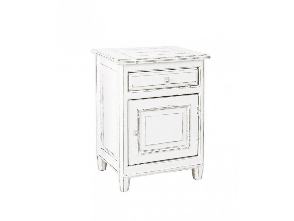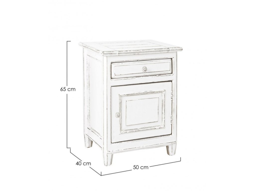 Nočný stolík vo vintage štýle funkčný a zároveň štýlový prvok, ktorý prinesie do vášho interiéru špeciálnu atmosféru nostalgie a pohodlia. Je vybavený jedným šuflíkom a úložným priestorom s dvierkami.
