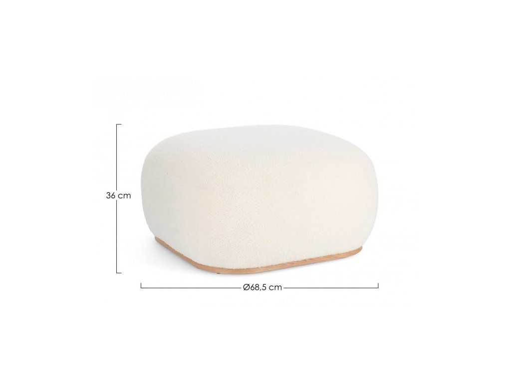Minimalistický štvorcový puf v bielom prevedení s buclé efektom, ktorý dodá interiéru nádych pohodlia a jemnosti. Súčasťou pufu je estetická podstava z dyhy.