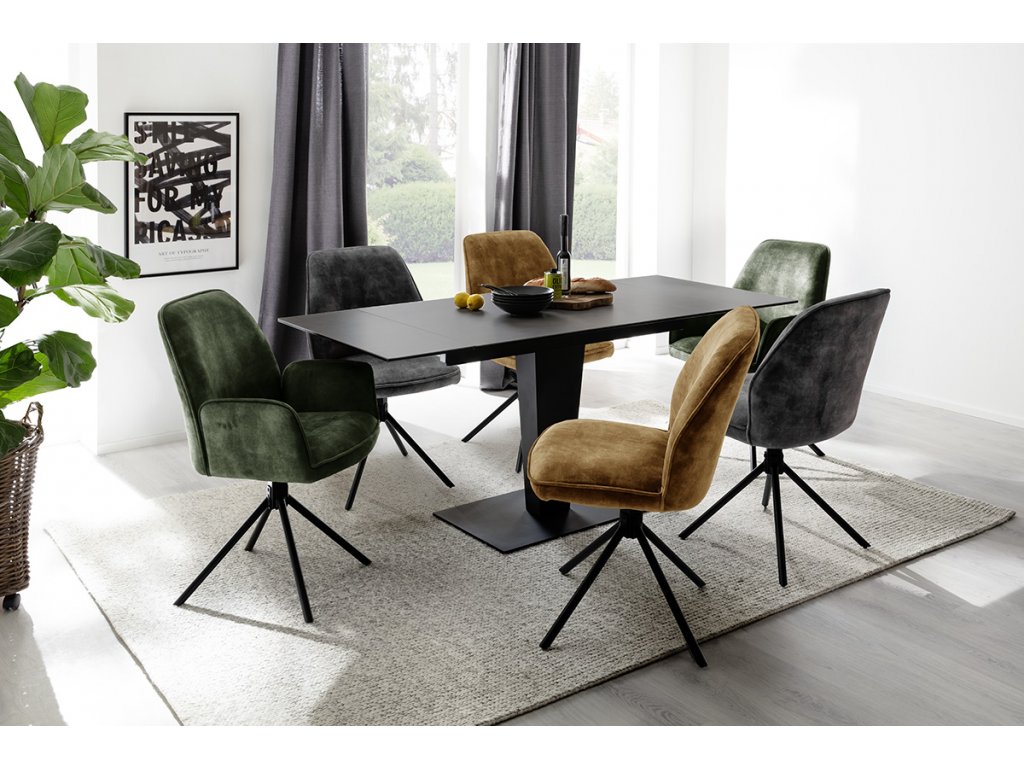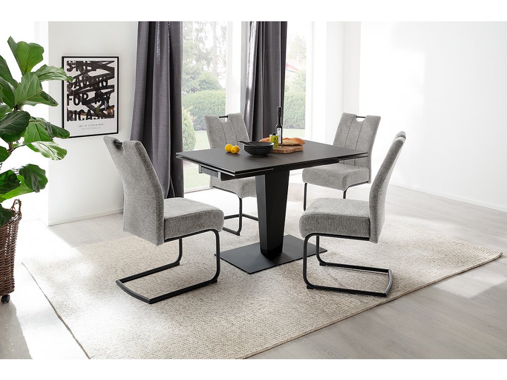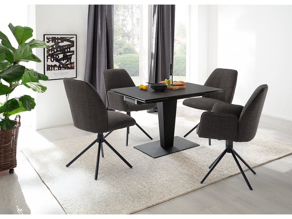 Pozdvihnite svoj zážitok zo stolovania s jedálenským stolom Pesaro. Úžasným centrálnym prvkom kuchyne, ktorý spája sofistikovanosť antracitovej keramiky a bezpečnostného skla pre pôsobivú estetiku.