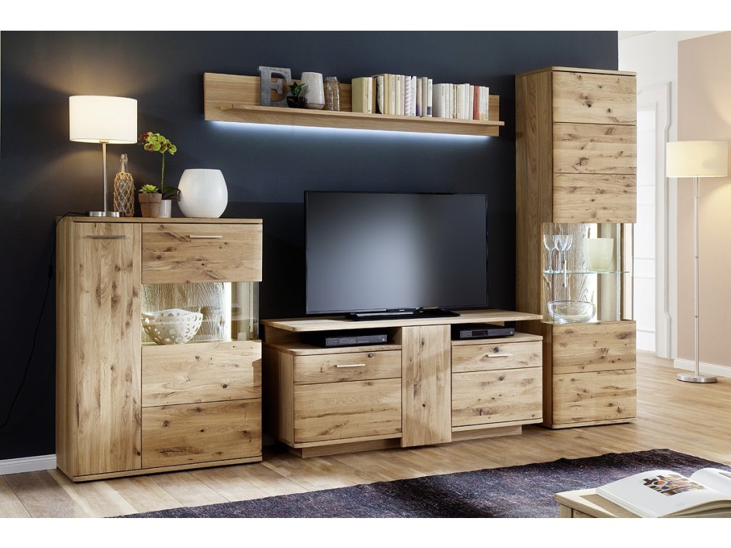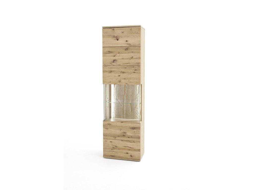 Dizajnová, 1-dverová skriňa s vitrínou ktorá je doplnená ovoliteľné LED osvetlenie. Skriňa je vyhotovená z olejovaného dubového dreva. V ponuke sa nachádzajú aj ďalšie kúsky z tejto kolekcie, stačí do vyhľadávania zadať "SANTORI" pre ich zobrazenie.